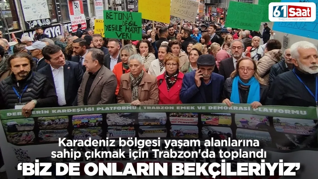 Karadeniz Bölgesin’nde Sinop’tan Artvin’e kadar bir çok ilin Çevre STK’ları bugün Trabzon’da buluştu. Trabzon’da, ‘Yaşam alanlarımıza emeğimize ve geleceğimizi sahip çıkıyoruz” sloganı ilk yürüyüş ardından da miting düzenlendi. Eski TEDAŞ Yokuşunda başlayan yürüyüş, Maraş Caddesi istikametinden Atatürk Alanı’nda son buldu.