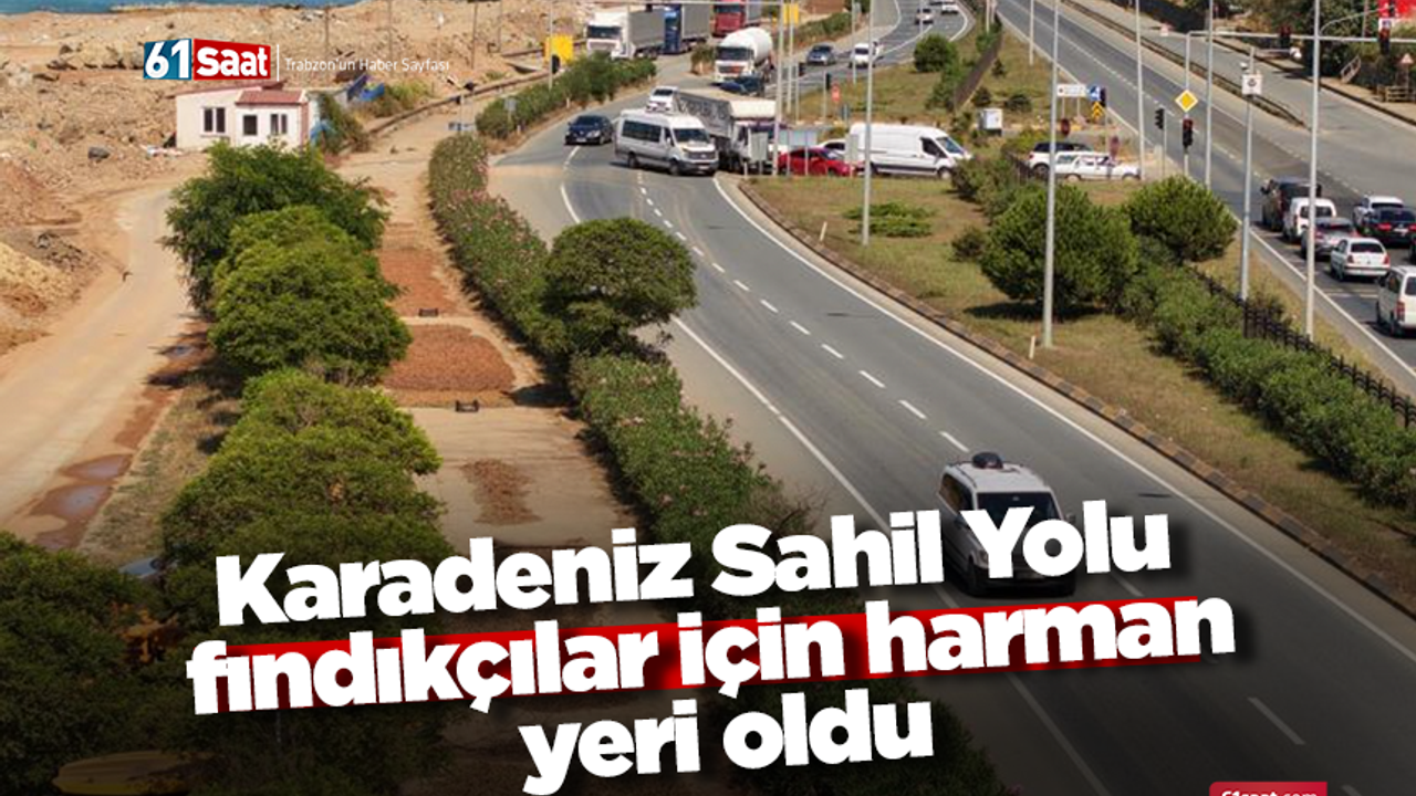 Arsin ilçesinde fındık bahçesinde çuvallara doldurdukları fındıkları kurutmak için Karadeniz Sahil Yolu'na yoluna kadar getiren üreticiler fındıkları yol kenarlarında metrelerce uzunluktaki kaldırımlara serdiler. Yüksek kesimlerde uzun süren fındık kurutma işlemi nedeniyle Karadeniz Sahil Yolunu harmana çeviren üreticiler kısa sürede fındıklarını kurutabiliyorlar.