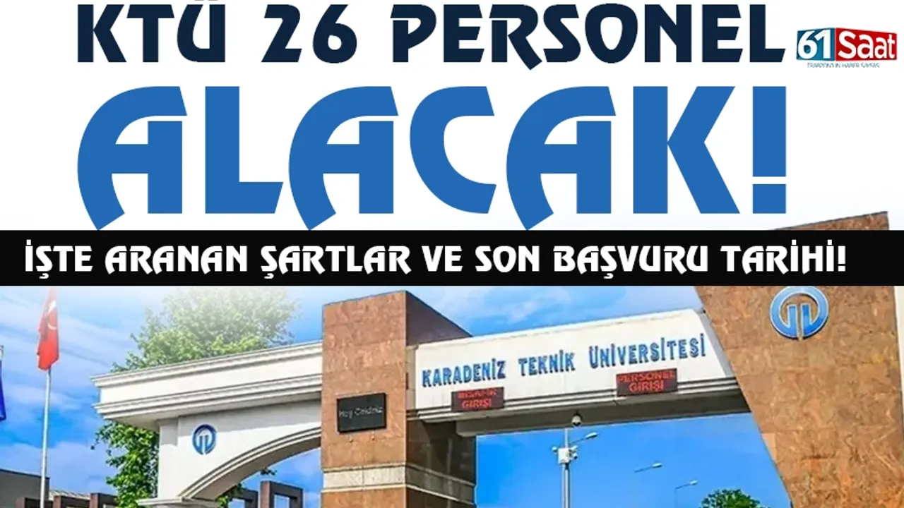 Karadeniz Teknik Üniversitesi, üniversite bünyesinde görevlendirilmek üzere profesör, doçent ve doktor öğretim üyesi kadrolarına toplam 26 akademik personel alacağını duyurdu. İlan, 31 Aralık 2025 tarihli Resmi Gazete’de yayımlandı.
