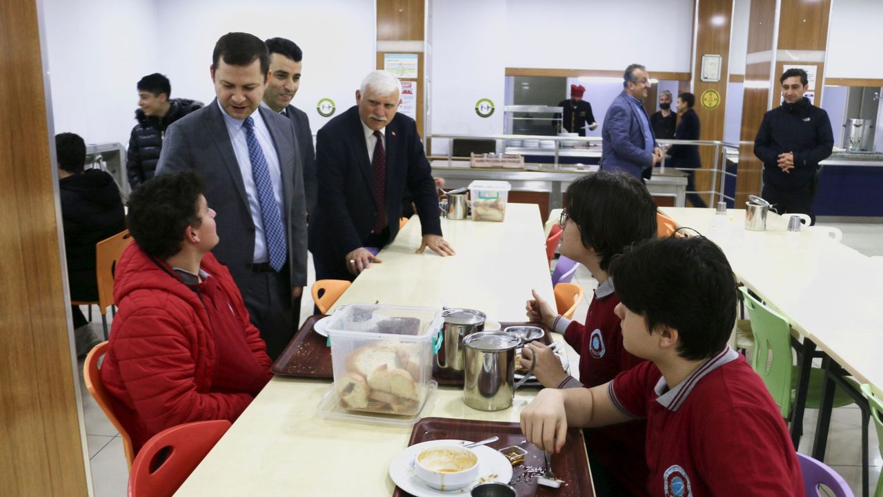Kaymakam Demirer ve İlçe Milli Eğitim Müdürü İdris Kabahasanoğlu ziyaretin ardından pansiyonda öğrencilere birlikte öğlen yemeği yiyerek okuldan ayrıldı.