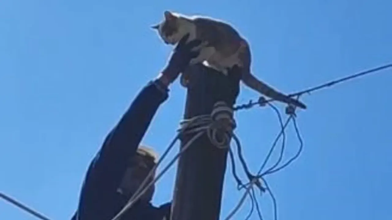 Kediyi fark eden sahibi, durumu Çoruh Elektrik Dağıtım A.Ş. (Çoruh EDAŞ) ekiplerine bildirdi. Arıza ekipleri, kedinin elektrik akımına kapılmaması için enerji akışını kesti. Daha sonra görevlilerden Serkan Yalduz, kediyi dikkatlice direkten alarak güvenli şekilde indirdi.