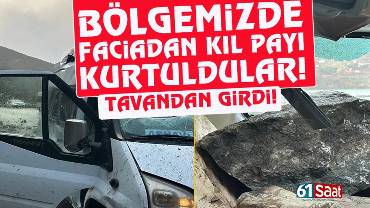 ARTVİN’in Borçka ilçesinde heyelan sonucu yamaçtan kopan kaya yolda ilerleyen yolcu minibüsüne isabete etti. Araçta hasar oluşurken, şans eseri yaralanan olmadı.