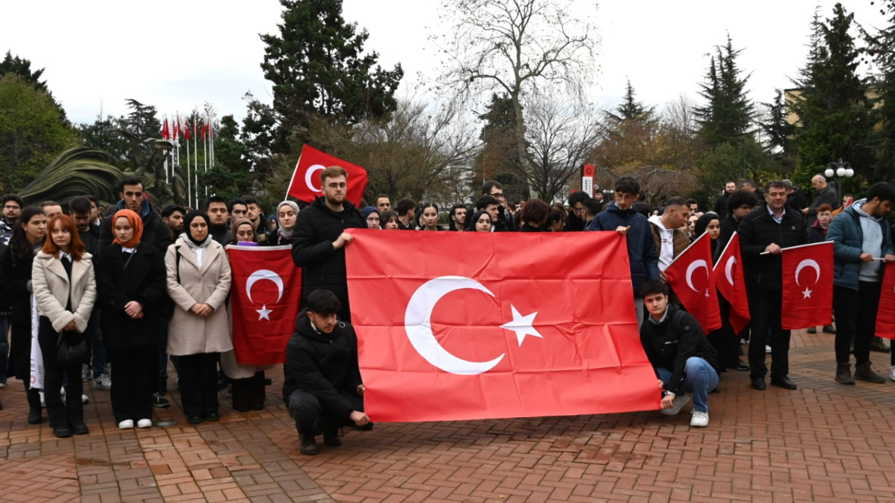 Karadeniz Teknik Üniversitesi’nde (KTÜ) bölücü terör örgütü mensuplarının hain saldırıları sonucu şehit olan 12 askerimiz için basın açıklaması düzenlendi. Rektörlük binası önünde düzenlenen programa KTÜ Rektörü Prof. Dr. Hamdullah Çuvalcı, akademisyenler, idari personeller ve öğrenciler katıldı. Programda konuşan Rektör Prof. Dr. Hamdullah Çuvalcı, Türkiye’nin terörle sindirilemeyecek kadar güçlü bir ülke olduğunun altını çizerek, “Üniversite olarak; devletimizin bölücü terör örgütüne karşı yürüttüğü amansız mücadeleye tam destek verirken, devletimiz tarafından uygulanan “terörü kaynağında kurutma stratejisini” terörle mücadelenin en önemli ayağı olarak görüyoruz. Cumhurbaşkanımız Sayın Recep Tayyip Erdoğan’ın dediği gibi, “Bölgemizin geleceğinde teröre asla yer yoktur” anlayışından biran olsun vazgeçmiyor, ülkemizin yarınlarını terörden arındırmak, cennet vatanımızı geleceğe daha iyi hazırlamak için var gücümüzle çalışmamız gerektiğinin altını çiziyorum” dedi.