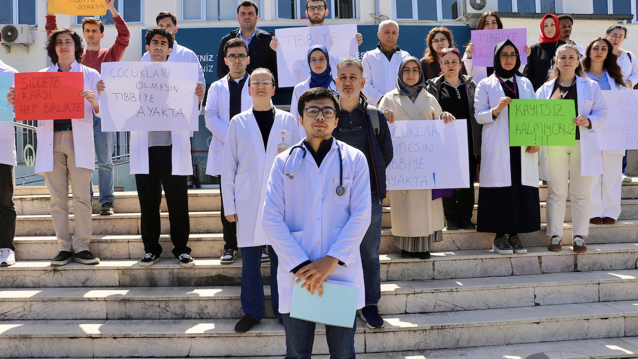 KTÜ Tıp Fakültesi önünde bir araya gelen akademisyenler ve öğrenciler, 'çocuklar ölmesin tıbbiye ayakta', 'kalbimiz çocuklarla' ve 'şiddete karşı hep birlikte' yazılı dövizler taşıdı. Grup adına açıklamada bulunan KTÜ Tıp Fakültesi 4. sınıf öğrencisi Yiğit Eren Kavun, olaydan dolayı herkesin çok üzüldüğünü ve etkilendiğini söyledi. Gruptakiler, daha sonra hayatını kaybeden öğretmen ve öğrenciler için ellerindeki balonları gökyüzüne bıraktı.