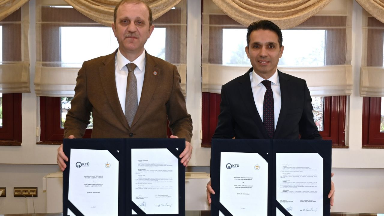 KTÜ Rektörü Prof. Dr. Hamdullah Çuvalcı ve KKTC Trabzon Başkonsolosu Erek Çağatay arasında iş birliği protokolü imzalandı.