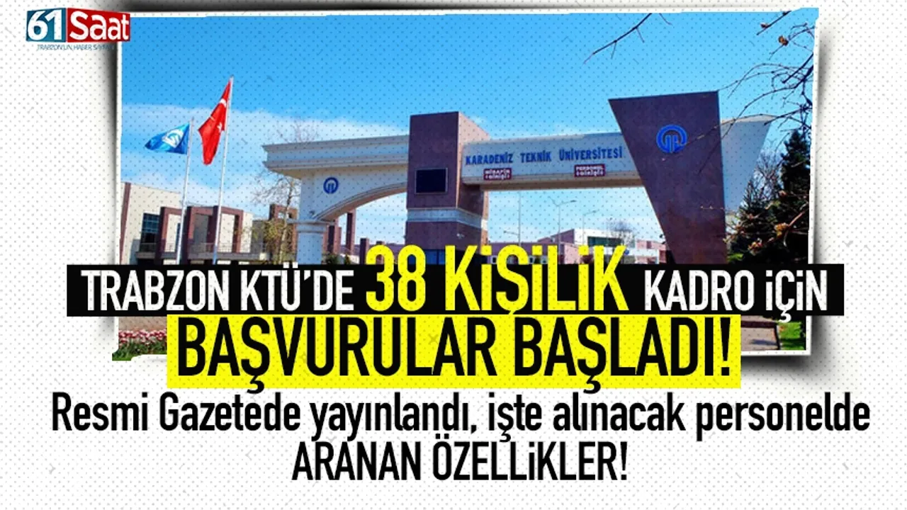 Trabzon'da bulunan Karadeniz Teknik Üniversitesi (KTÜ), öğretim elemanı ve öğretim üyesi alımı yapacağını duyurdu. Başvurular, üniversitenin resmi web sitesi üzerinden elektronik ortamda gerçekleştirilecek. Ön değerlendirme ve nihai sonuçlar yine KTÜ’nün internet sitesinden ilan edilecek.