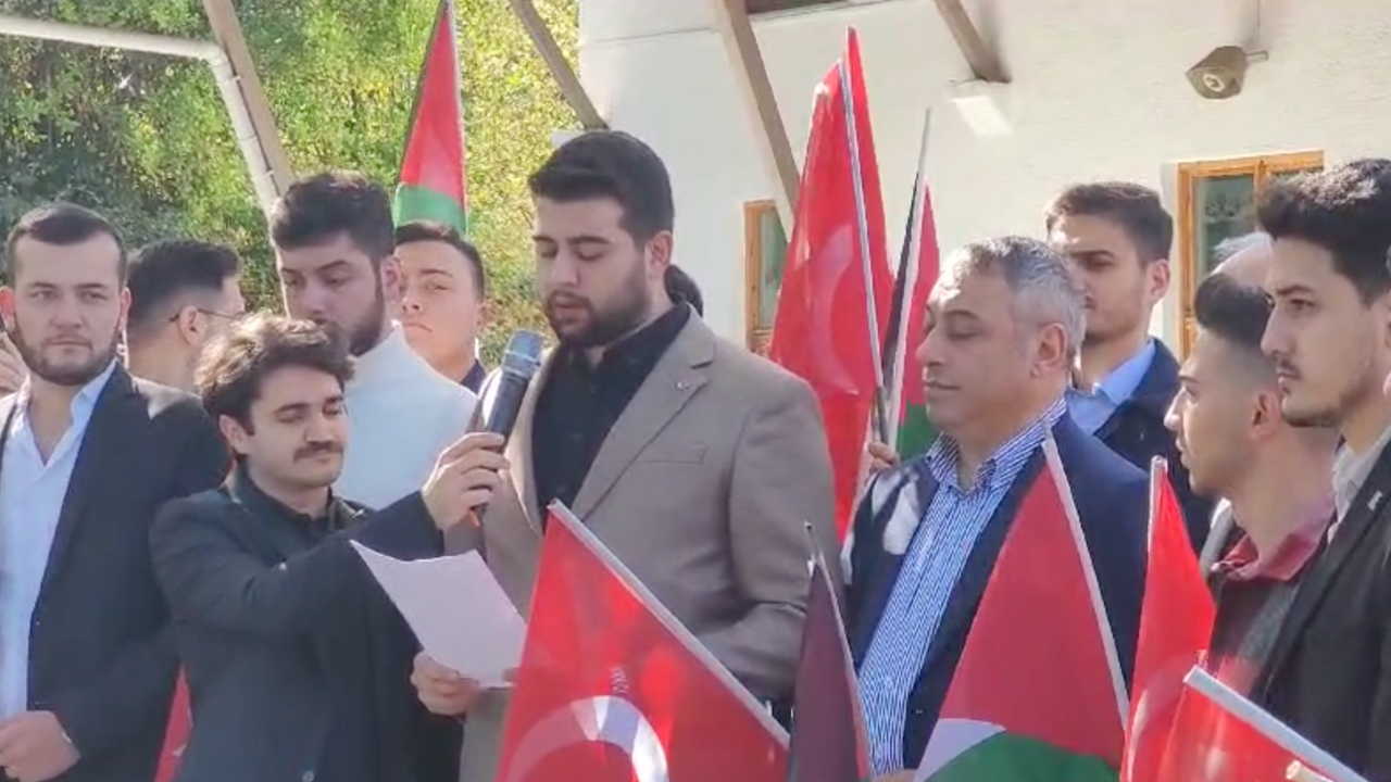 KAHROLSUN ELİNDE BEBEK KANI OLANLARMuhammed Enes Güngör açıklamalarında, “Elhamdülillahi rabbil alemin vesselatu vesselamu ala resuluna muhammedin ve ala alihi ve sahbihi ecmain Trabzon’dan selam olsun Mazlum Filistin halkına, Selam olsun Mescidi Aksaya. Yüzlercesi burada, Trabzonda, Milyonlarcası Türkiyenin tamamında Filistin için tek yürek olmuş inanmış kardeşlere selam olsun! Kahrolsun, Elinde bebek kanı olanlar Kahrolsun, Çoluk çocuk, yaşlı ,kadın, masum,sivil, tanımaksızın hastane bombalayanlar. Kahrolsun, Yıllardır milyonlarca Filistinliyi aç susuz bırakanlar. Kahrolsun, Bombalarla göğü karartanlar. Kahrolsun, Mescidi Aksaya zorbalıkla saldıranlar. Kahrolsun, Terörist İsrail, kahrolsun. Kıymetli arkadaşlar Filistin’de Gazze’de bitmek bilmeyen zulüm yeniden hat safhaya ulaştı. İşte Gazze’de yaşananlar, bunun en açık örneğidir. İsrail, Gazze’yi yıllardır dünyanın en büyük açık hava hapishanesine dönüştürmüştür. Abluka altına aldığı Gazzeli kardeşlerimizin en temel ihtiyaçlarını temin etmelerine bile engel olmuştur. Kardeşlerimiz yerinden ve yurdundan edilmiştir. Mal ve mülkleri haksız bir şekilde ellerinden alınmıştır. Onlara hiçbir şekilde hayat hakkı tanınmamıştır. Gazze’de bugün tüm dünyanın gözü önünde tarihin en büyük zulmü yaşanmaktadır. Bütün bu baskı ve zulümlerin karşısında Müslümanlara özgürlük mücadelesinde direnmekten başka çare kalmamıştır” dedi.