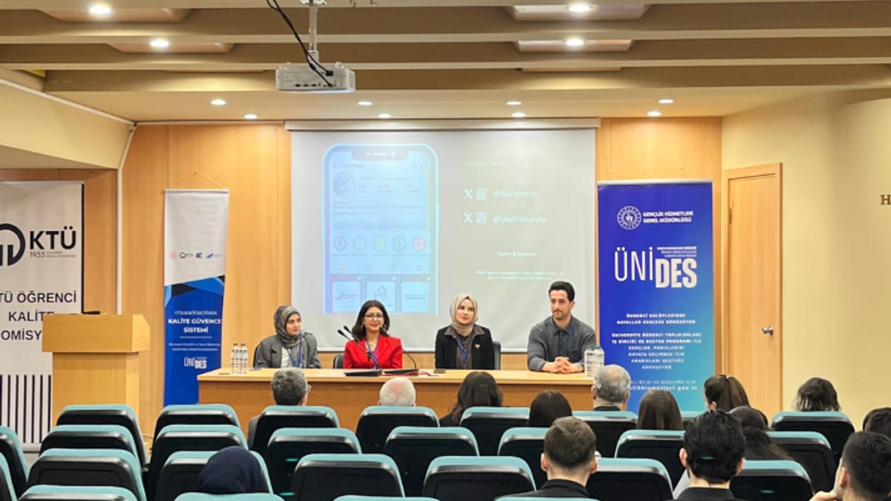 KTÜ Öğrenci Kalite Topluluğu tarafından düzenlenen, Yükseköğretim Kalite Kurulu (YÖKAK) Öğrenci Kalite Komisyonu yetkililerinin de katıldığı çalıştayda; öğrencilerin kalite süreçlerine aktif katılımı, geribildirim mekanizmalarının güçlendirilmesi ve kalite kültürünün içselleştirmesi amaçlandı.