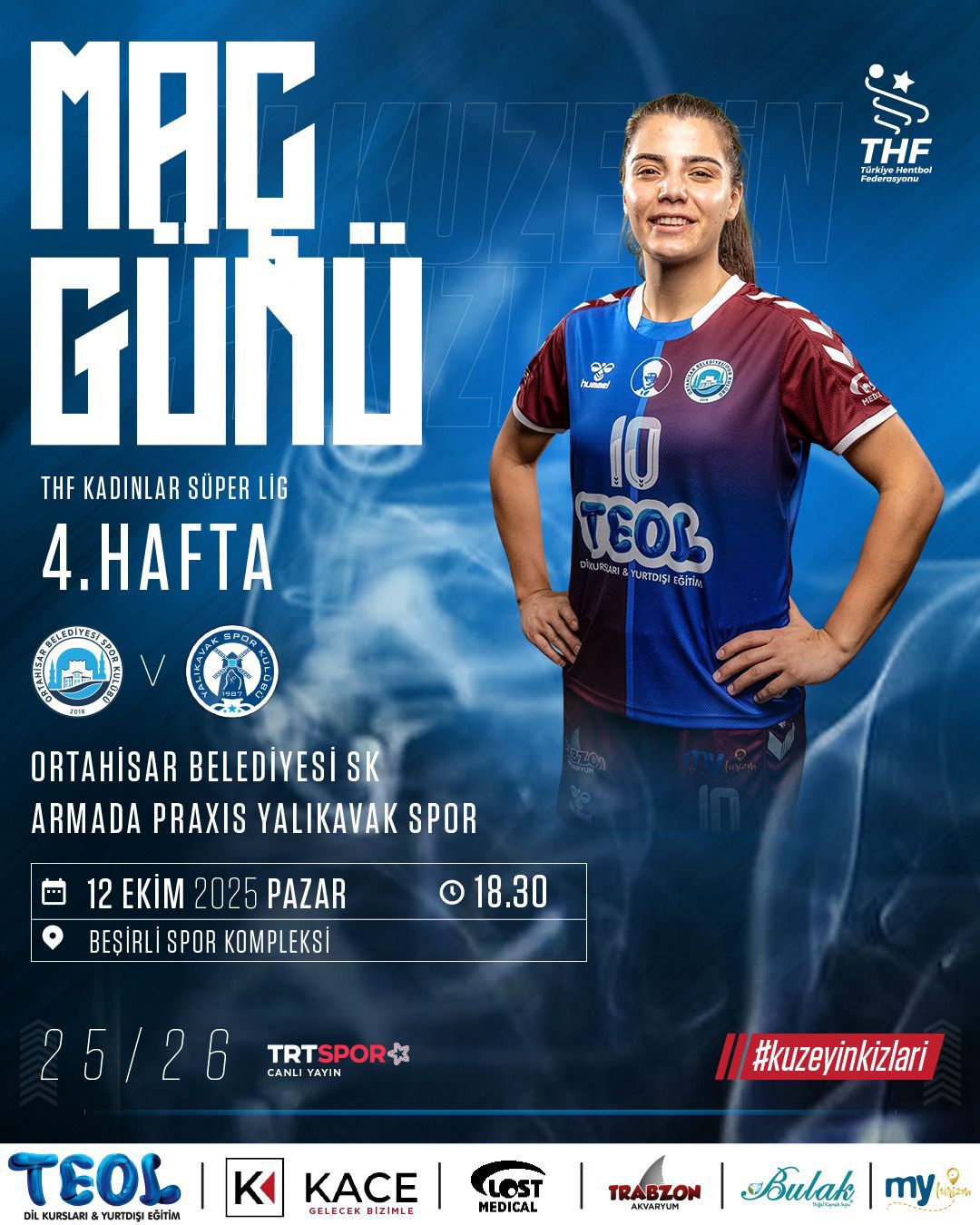 Geçen yıl başarılı bir sezonu geride bırakan ve bu yıl da lige ‘şampiyonluk’ hedefiyle başlayan Ortahisar Belediyesi SK, ligin 4. haftasında sahasında Armada Praxis Yalıkavak Spor’u ağırlayacak. Güçlü rakibi karşısında sahaya galibiyet hedefiyle çıkacak Kuzeyin Kızları, bu zorlu maçı kazanarak ligde üst sıralara tırmanmak istiyor. 12 Ekim 2025 Pazar günü saat 18.30’da Beşirli Spor Kompleksi'nde oynanacak maç, TRT Spor Yıldız ekranlarından canlı yayınlanacak.