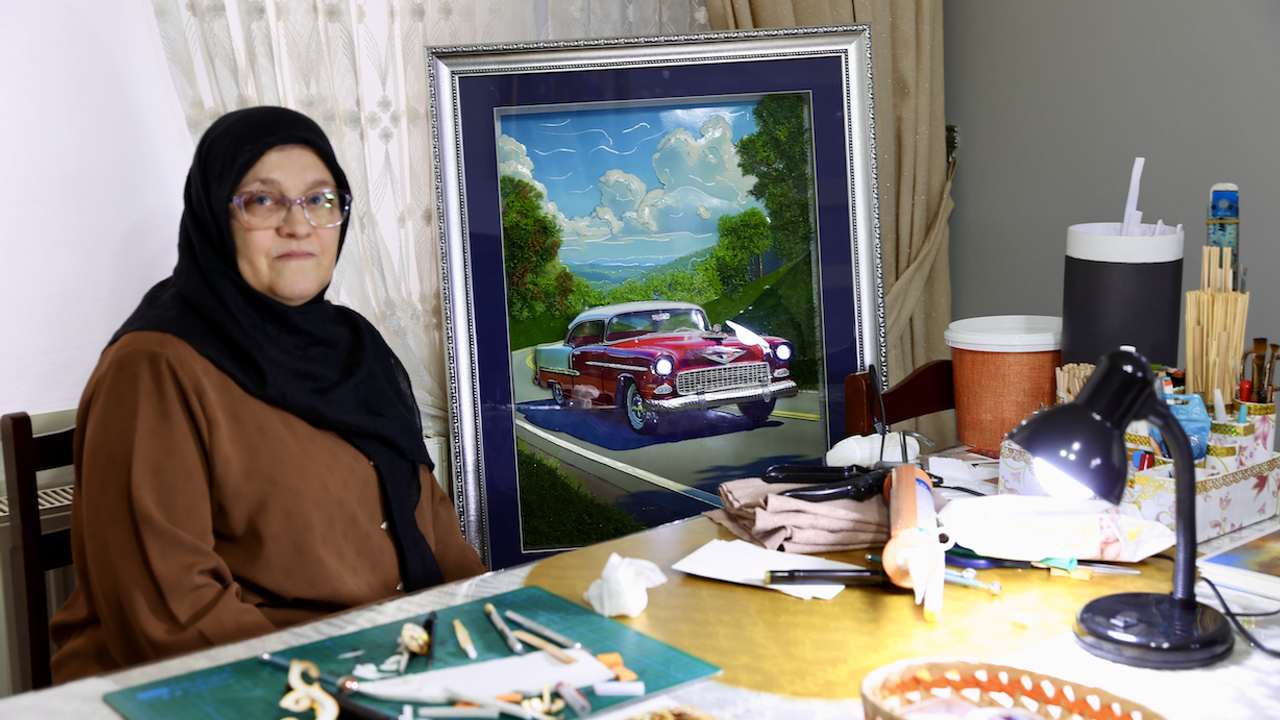 Halk Eğitimi Merkezinin açtığı "rölyef tekniğiyle tablo yapma kursu"na katılan 64 yaşındaki Satıroğlu, çevresinin ve yakınlarının da desteğiyle kısa sürede kendisini geliştirdi.