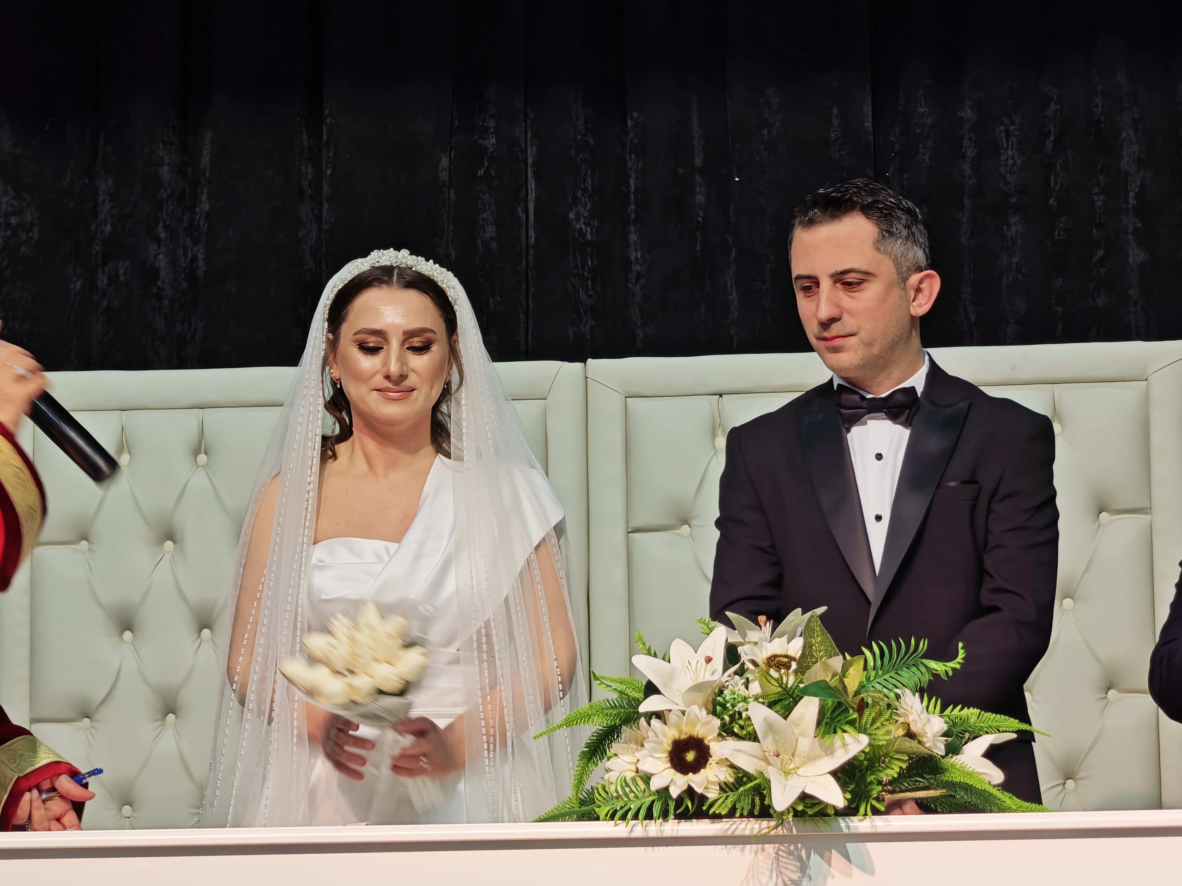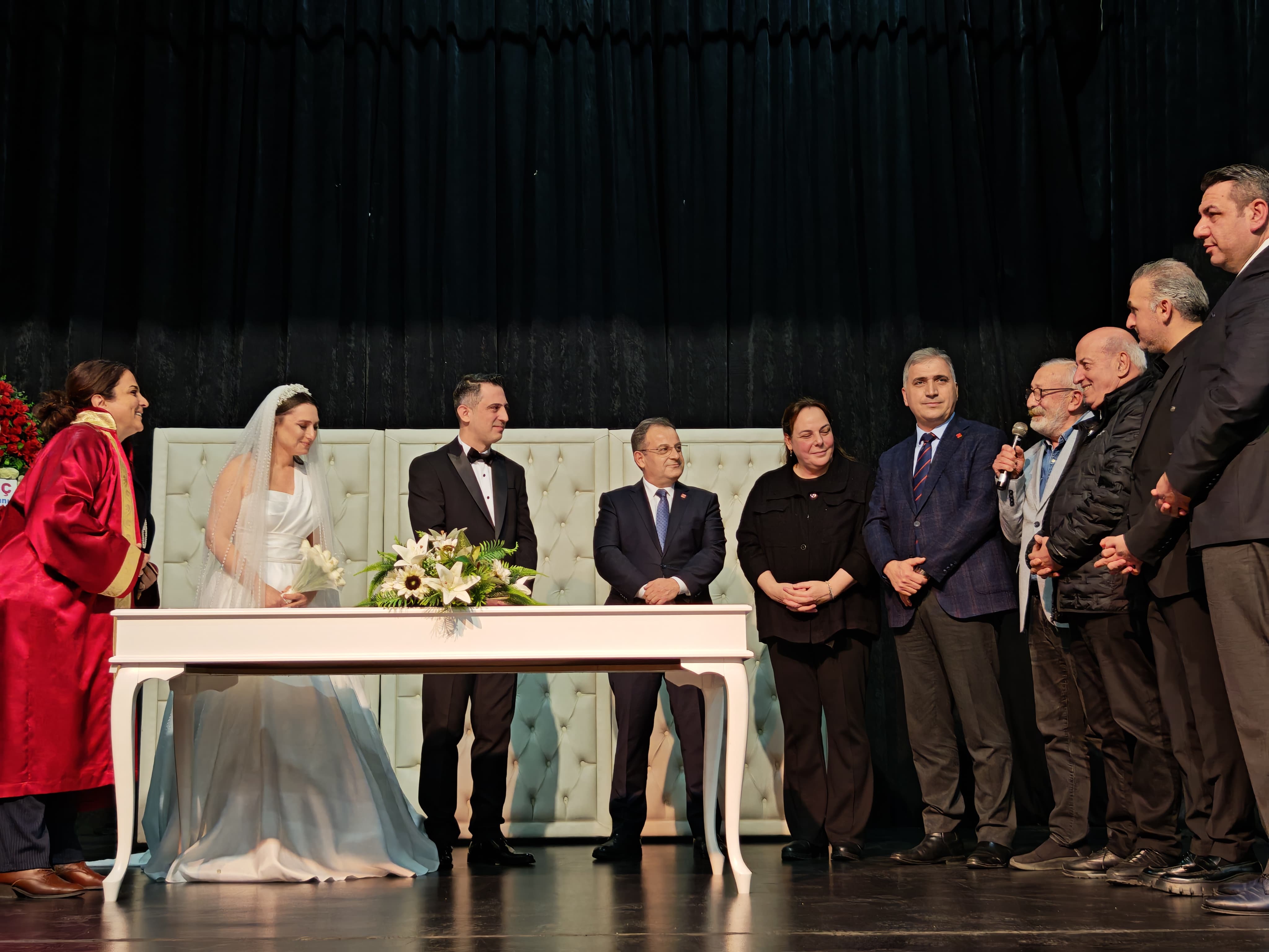 Hamamizade İhsan Bey Sanat ve Kültür Merkezi'nde gerçekleştirilen nikah töreninde, Beşikdüzü Belediye Başkanı Burhan Cahit Erdem, CHP Trabzon İl Başkanı Mustafa Bak, CHP Ortahisar İlçe Başkanı Haluk Batmaz ve Kuzey Ekspres Gazetesi İmtiyaz Sahibi Selçuk Hamzaçebi, şahitlik yaptı.