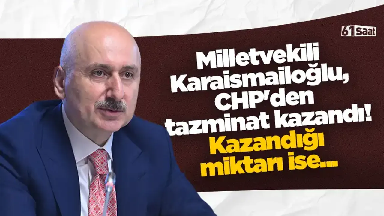 TBMM Bayındırlık Komisyonu Başkanı Karaismailoğlu, kişilik haklarına saldırı gerekçesiyle CHP Grup Başkanvekili Başarır'a açtığı manevi tazminat davasından 50 bin lira tazminat kazandı. Karaismailoğlu, kazandığı tazminatı Gazze'ye bağışlayacak.