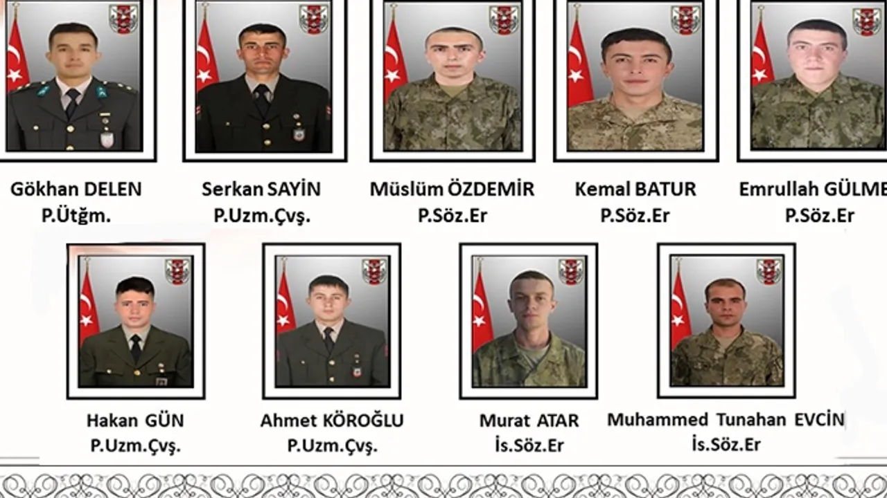 P. Üsteğmen Gökhan Delen, P. Uzm. Çvş. Serkan Sayin, P. Söz. Er. Müslüm Özdemir, P. Söz. Er Kemal Batur, P. Söz. Er Emrulllah Gülmez, P. Uzm. Çvş. Hakan Gün, P. Uzm. Çvş. Ahmet Köroğlu, İs. Söz. Er. Murat Atar ve İs. Söz. Er Muhammed Tunahan Evcin