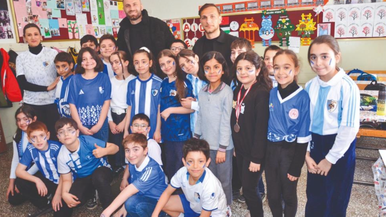 Çocuklarla bir anda sarmaş dolaş olan Kaptan Yumlu ve Sefa Akgün daha sonra giyilen formaları imzaladı ve spor salonunda üç ve dördüncü sınıflarla bir araya geldi. Çocukların birbirinden ilginç sorularını yanıtlayan Kaptan Yumlu ve Akgün, öğretmen ve öğrencilerle bol bol fotoğraf çektirerek forma imzaladı.