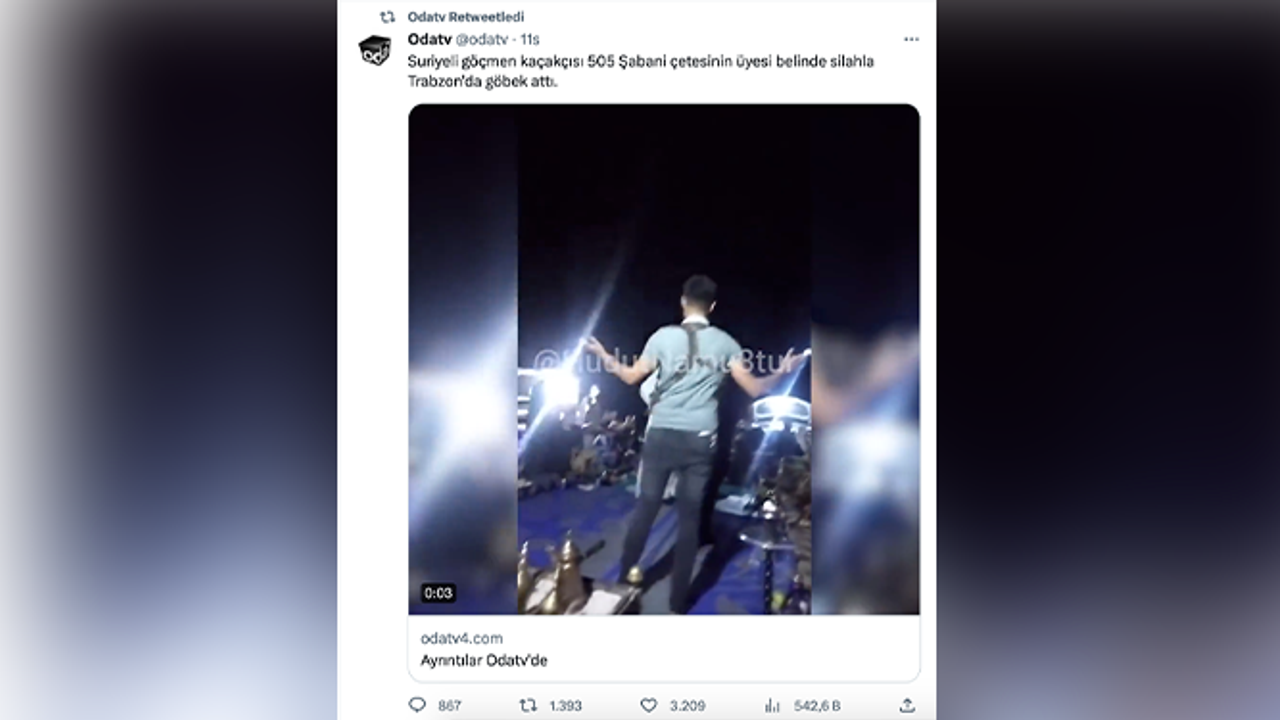 Türkiye'nin önde gelen haber yayın organlarından ODA TV'nin bugün yayınladığı, Trabzon'da Suriyeli çete mensuplarının bellerinde silahlarla halay çekip eğlendiklerine dair videoların, Trabzon'da çekilmediği, paylaşımın 1 sene önce yapıldığı ve yapan kişinin de sınır dışı edildiği, olayın Trabzon ile alakasının olmadığı öğrenildi. bir sosyal medya sayfasının kaynak gösterildiği videoların Trabzon ile alakası olmamasına rağmen araştırmadan Trabzon'un adını kullanarak turizm sezonunda kötü algı yaratan yayın organına vatandaşlar ve şehrin yöneticileri tepki gösterdi.