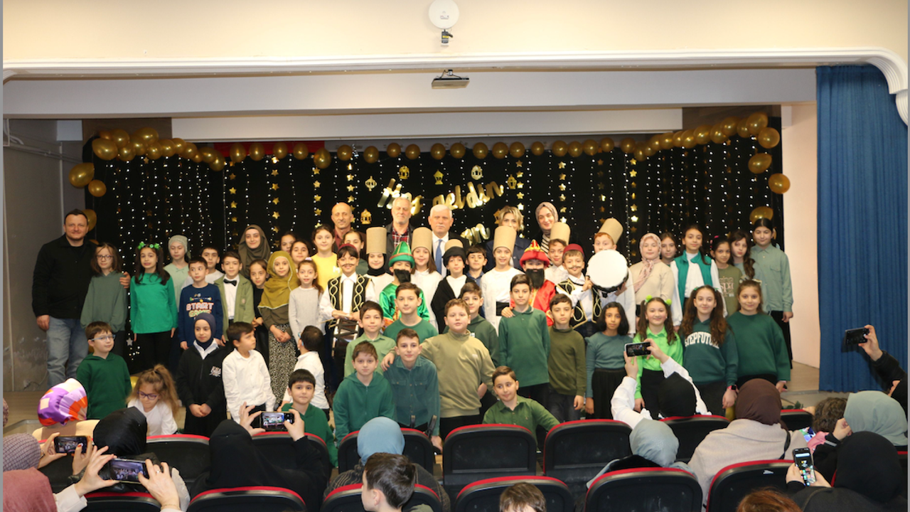 Kur'an'ı Kerim tilavetinin ardından öğrenciler davul eşliğinde maniler söyleyip ilahiler okudu. Program, Karagöz-Hacivat oyunu, tiyatro ve sema gösterisiyle sona erdi.