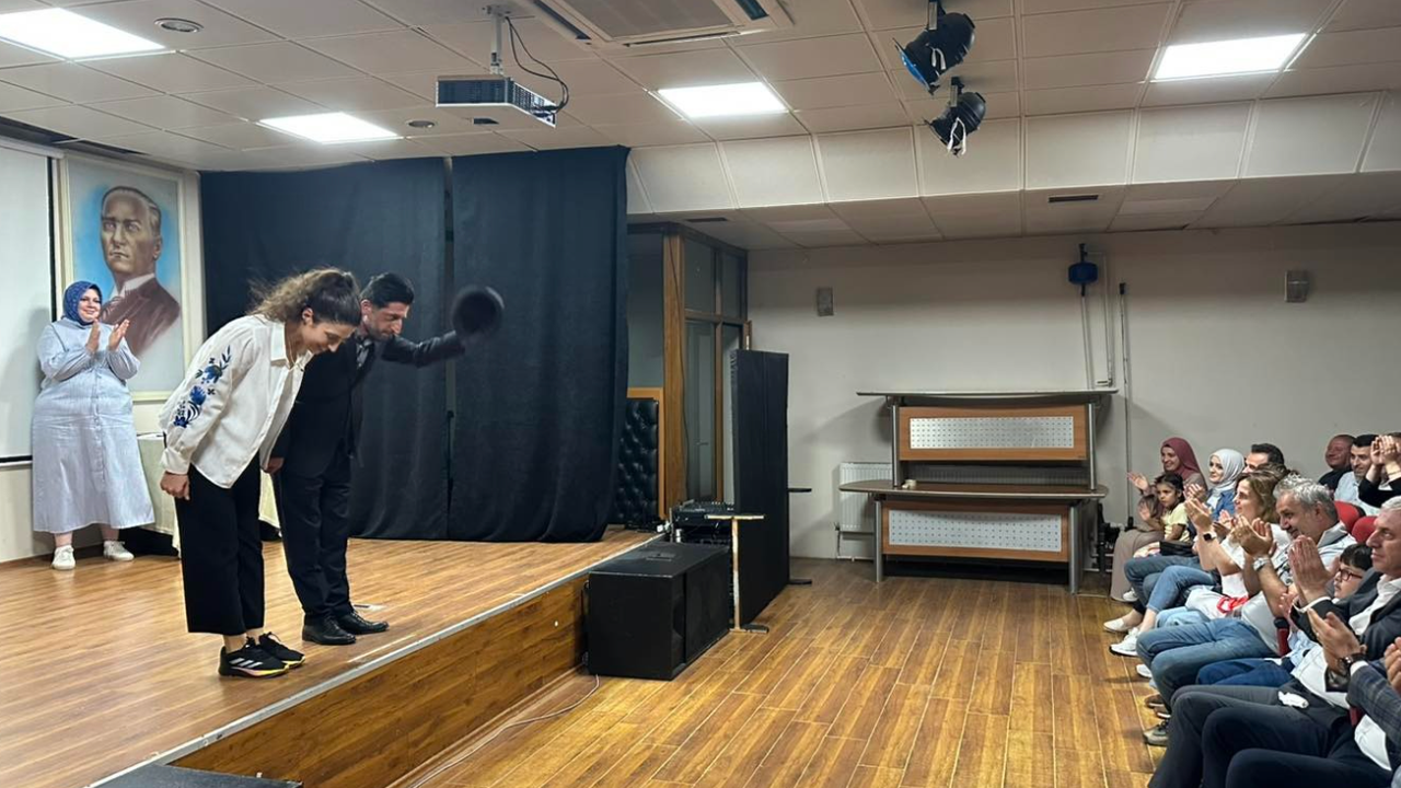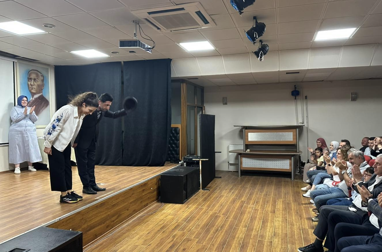 Sanat yönetmenliğini Of Bilim ve Sanat Merkezi Müdürü Osman Kınacı’nın üstlendiği oyunda, ilçedeki öğretmenler seyirciden tam not aldı. Tiyatro, düşündürücü olduğu kadar eğlenceli yönleriyle de izleyicileri etkiledi.