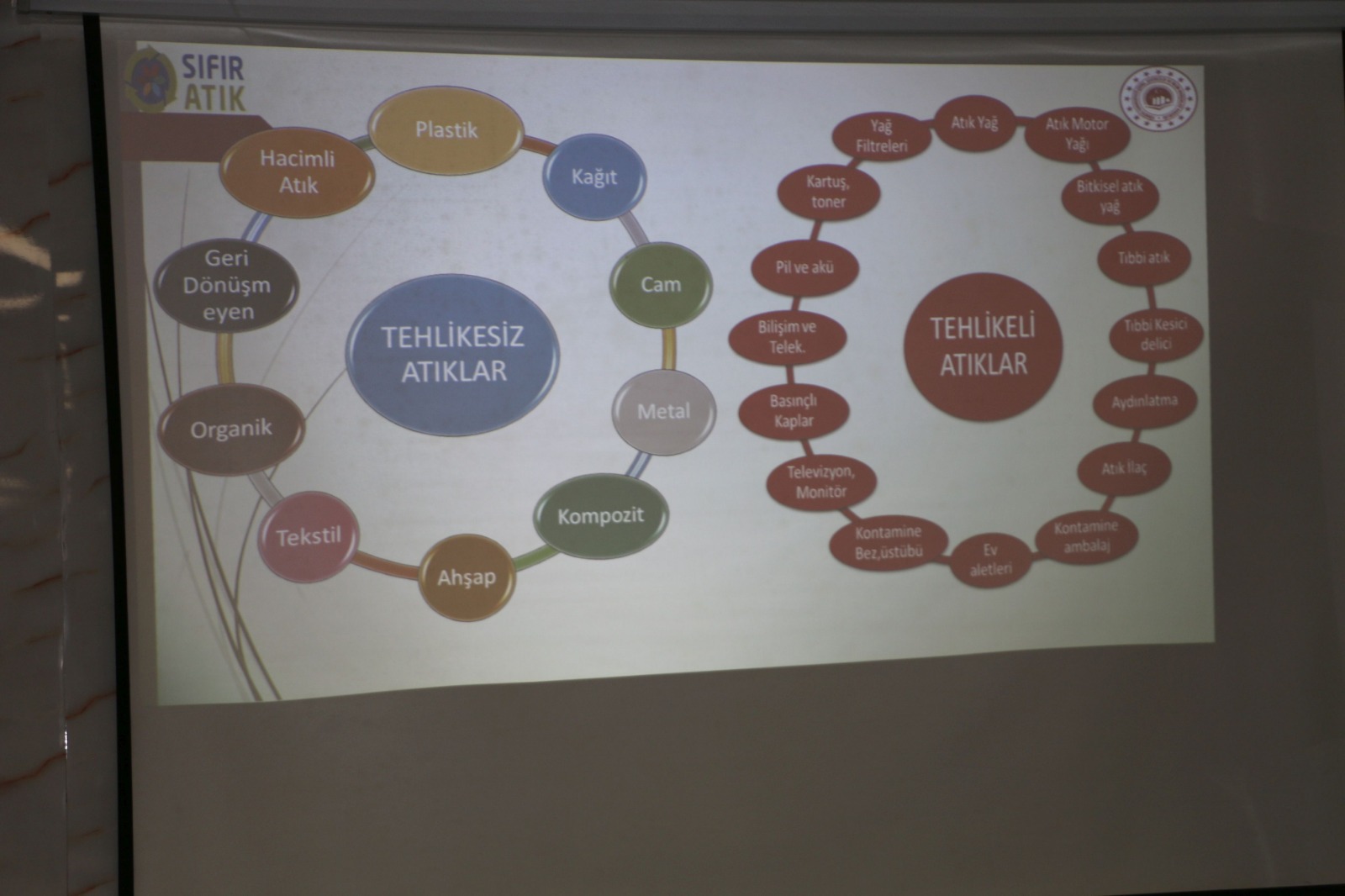 Çevre ve Şehircilik Trabzon İl Müdürlüğünde görevli Çevre Mühendisi Arif yılmaz Kimya Mühendisi Nilüfer Kuturoğlu yaptıkları sunumda; dünyada çevre sorunlarının ortaya çıkışı ve çözüm yollarının ekonomiye etkisi, "Sıfır Atık Projesi ile ilgili şu ana kadar yapılan çalışmaları ve sürecin devamında kurumların yerine getirmek zorunda oldukları iş ve işlemleri anlatarak katılımcı idarecilerin sorularını yanıtladı.