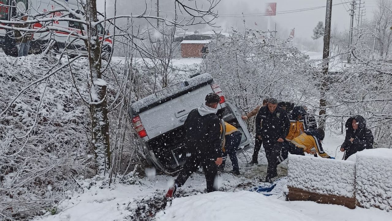 Kaza, ilçenin Hanyanı Mahallesi Çaybaşı Karayolu üzerinde meydana geldi. Edinilen bilgiye göre, Çaybaşı ilçesinin İlküvez Mahallesi’ndeki evine seyir halinde olan Mehmet Kaya yönetimindeki 52 AAR 317 plakalı kamyonet, yoğun kar yağışı nedeniyle kontrolden çıkarak fındık bahçesine yuvarlandı.