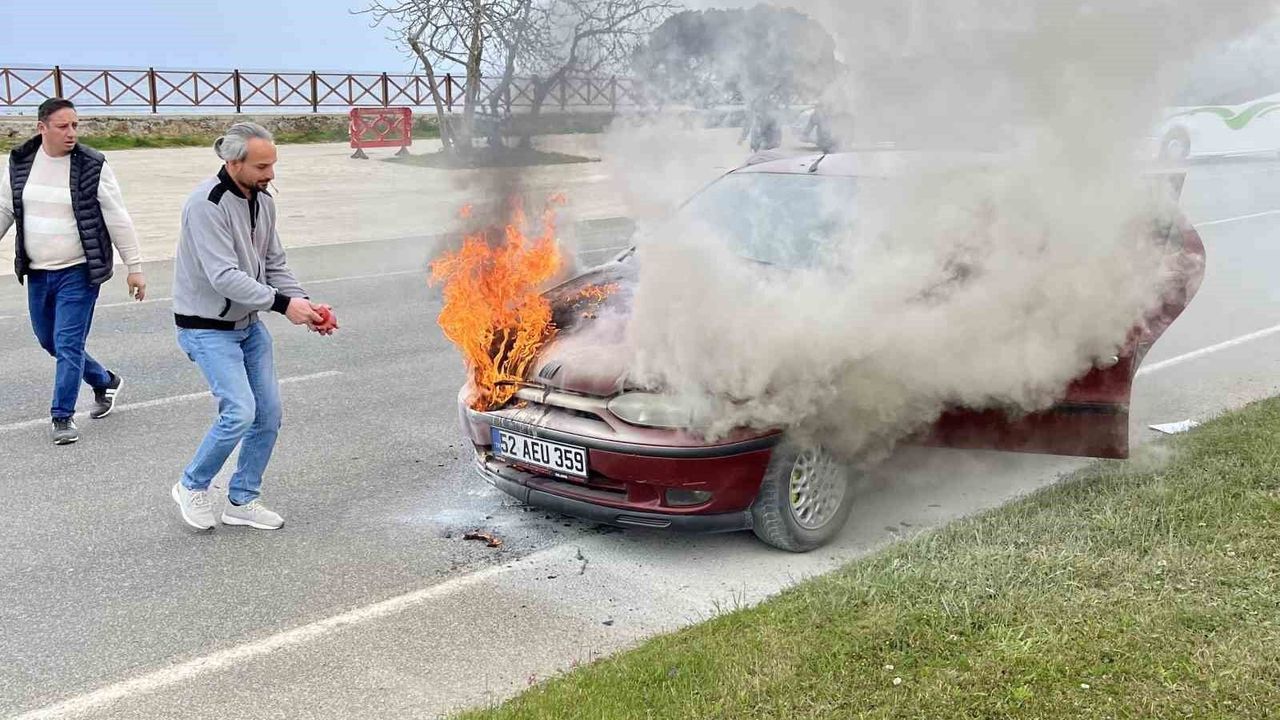 Yangın, Gölevi Mahallesi Devlet Sahil Yolu Caddesi üzerinde meydana geldi. Ufuk Kılıçkaya idaresindeki 52 AEU 359 plakalı otomobilin Ünye şehir merkezi istikametine seyir halinde ilerlediği sırada, motor bölümünden dumanlar yükselmeye başladı. Dumanları gören sürücü Ufuk Kılıçkaya hemen araçtan inerek yangına müdahale etmeye çalıştı. Çevredekilerin haber vermesi üzerine bölgeye çok sayıda itfaiye ekipleri sevk edildi. Vatandaşlar yangın tüpleriyle otomobilin ön kısmındaki yangına müdahale etmeye çalışırken, Ordu Büyükşehir Belediyesi Ünye İtfaiye Grup Amirliği ekipleri motor bölümünü alevlerin sardığı otomobile müdahalede bulundu.
