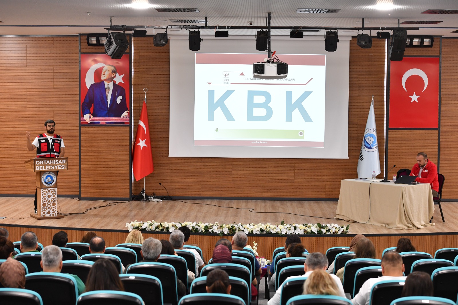 Türk Kızılay Derneği tarafından yürütülen 81 İl İlk Yardım Yaygınlaştırma Projesi kapsamında, Ortahisar Belediyesi personeline İlk Yardım Bilinçlendirme Eğitimi verildi. İnsan Kaynakları Müdürlüğü koordinesinde, Orhan Karakullukçu Toplantı Salonu’nda düzenlenen eğitime, Belediye Başkan Yardımcısı Özer İskender, birim müdürleri ve belediye personeli katıldı. Uygulamalı bilgilendirme ve interaktif eğitimle katılımcılara, ilk yardımın temel uygulamaları ve olay anında doğru müdahale yöntemleri aktarıldı.