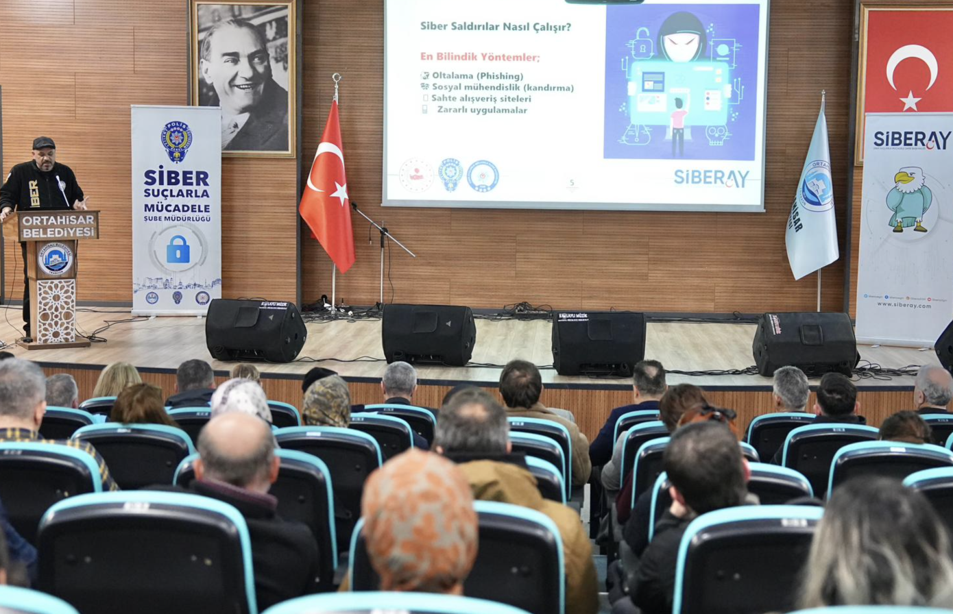 Ortahisar Kaymakamlığı işbirliğinde düzenlenen seminerde, yapay zeka kullanılarak yapılan dolandırıcılıklar, sosyal medya hesaplarının ele geçirilmesi, zararlı yazılımlar ve kişisel verilerin korunması gibi konular ayrıntılı şekilde ele alındı, siber tehditlere karşı alınması gereken önlemler anlatıldı.