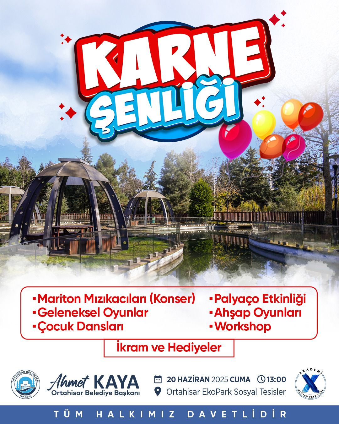 Karnelerini alarak tatile girecek öğrenciler için eğlenceli bir karne şenliği düzenleyeceklerini belirten Ortahisar Belediye Başkanı Ahmet Kaya, “2024-2025 Eğitim Öğretim Yılının sonuna geldik. Bir yıl boyunca emek veren, derslerine çalışan, gayret gösteren bütün öğrencilerimizi yürekten kutluyorum. Bu başarıyı hep birlikte, neşeyle taçlandırmak istiyoruz. Karnelerini alan yavrularımız için Ortahisar Belediyesi olarak 20 Haziran Cuma günü Ekopark Sosyal Tesisimizde birçok eğlenceli ve öğretici etkinliklerin olacağı Karne Şenliği düzenleyeceğiz. Çocuklarımız, Mariton Mızıkacıları, palyaço gösterileri, geleneksel ve ahşap oyunlar, çocuk dansları ve yaratıcı workshoplar ile hem eğlenecek hem de yılın yorgunluğunu atacaklar. Ayrıca, çeşitli ikramlar ve sürpriz hediyelerimiz de onları bekliyor. Bütün öğrencilerimizi ve velilerimizi bu güzel günde eğlenmeye davet ediyorum” dedi.