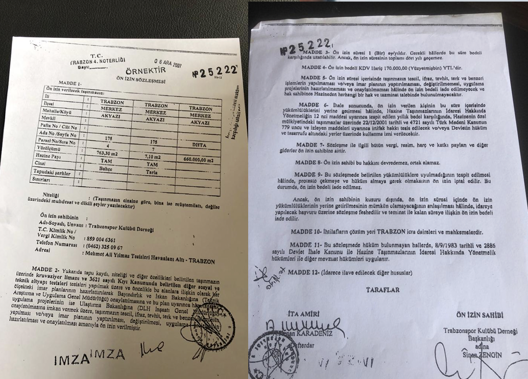 Akyazı koyunda dolgu işlemi başladığında, ortaya bir mülk çıkıyor. O mülk doğal olarak milli Emlak’ın oluyor. Milli emlak, Trabzon Defterdarı vasıtası ile ortaya çıkan mülkü, Trabzonspor’a devrediyor. Trabzonspor da Genel Müdür Sinan Zengin vasıtası ile bu devir işlemine imzasını atıyor.