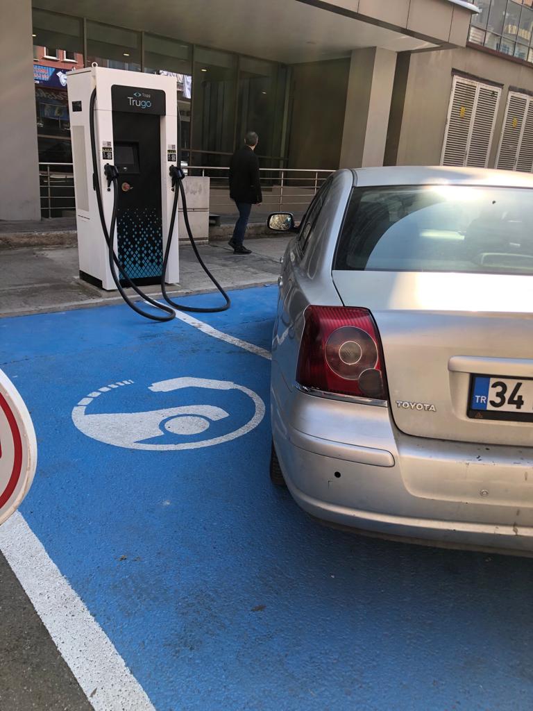 Yer, Büyükşehir belediyesinin Atapark’a çıkan yolu. Burada Belediye güzel bir işe imza atmış, Elektirikli araçlarla ilgili şarj istasyonu.. Ama bu sürücü sanki orası kendine tahsis edilmiş özel park yeriymiş gibi gelişigüzel park etmiş gitmiş.. İki araçlık yeri işgal etmiş.. Bre insaf. Bu yaptığın ahlaki ki..