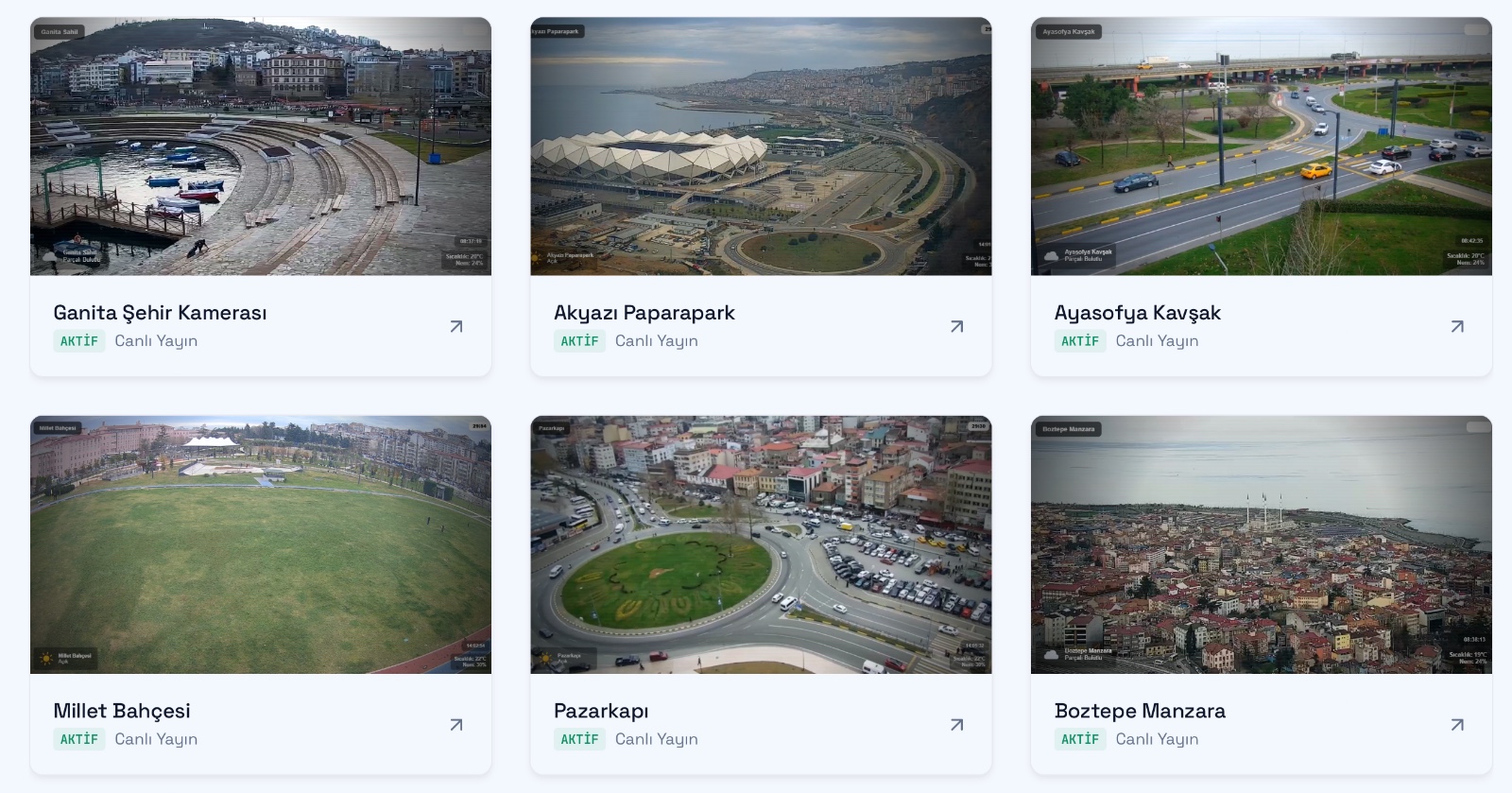 Trabzon Büyükşehir Belediyesi’nin kurduğu şehir kameraları, son dönemde özellikle gurbetçilerin kente olan özlemini bir nebze olsun dindiren önemli bir araç hâline geldi. Meydan Parkı’ndan Boztepe’ye, Uzungöl’den Atatürk Köşkü’ne, Ayasofya’dan Akyazı’ya, Millet Bahçesi’nden Değirmendere’ye kadar kentin turistik ve merkezi noktalarına yerleştirilen kameralar, 7 gün 24 saat canlı yayın yaparak Trabzon’u anbean izlenebilir kılıyor.