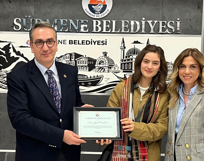 Azizoğlu, Ava Yaman’a sadece bir teşekkürle yetinmedi, ona "Fahri Hemşehrilik Beratı" ve plaket takdim etti.