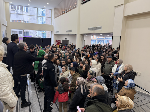 “Taşacak Bu Deniz” dizisinin oyuncuları izleyiciyle buluştu. Biz de oradaydık. Salon tamamen doluydu. Hatta öyle doluydu ki içeri giremeyenler dışarıda beklemek zorunda kaldı.