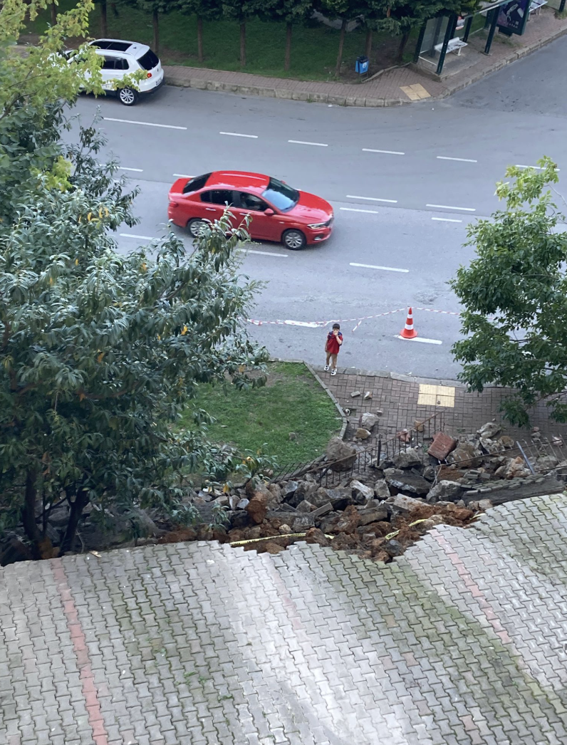 Bölgede etkili olan yağışlar sonrasında yaşanan çökme, sitede panik ve korkuya neden oldu.