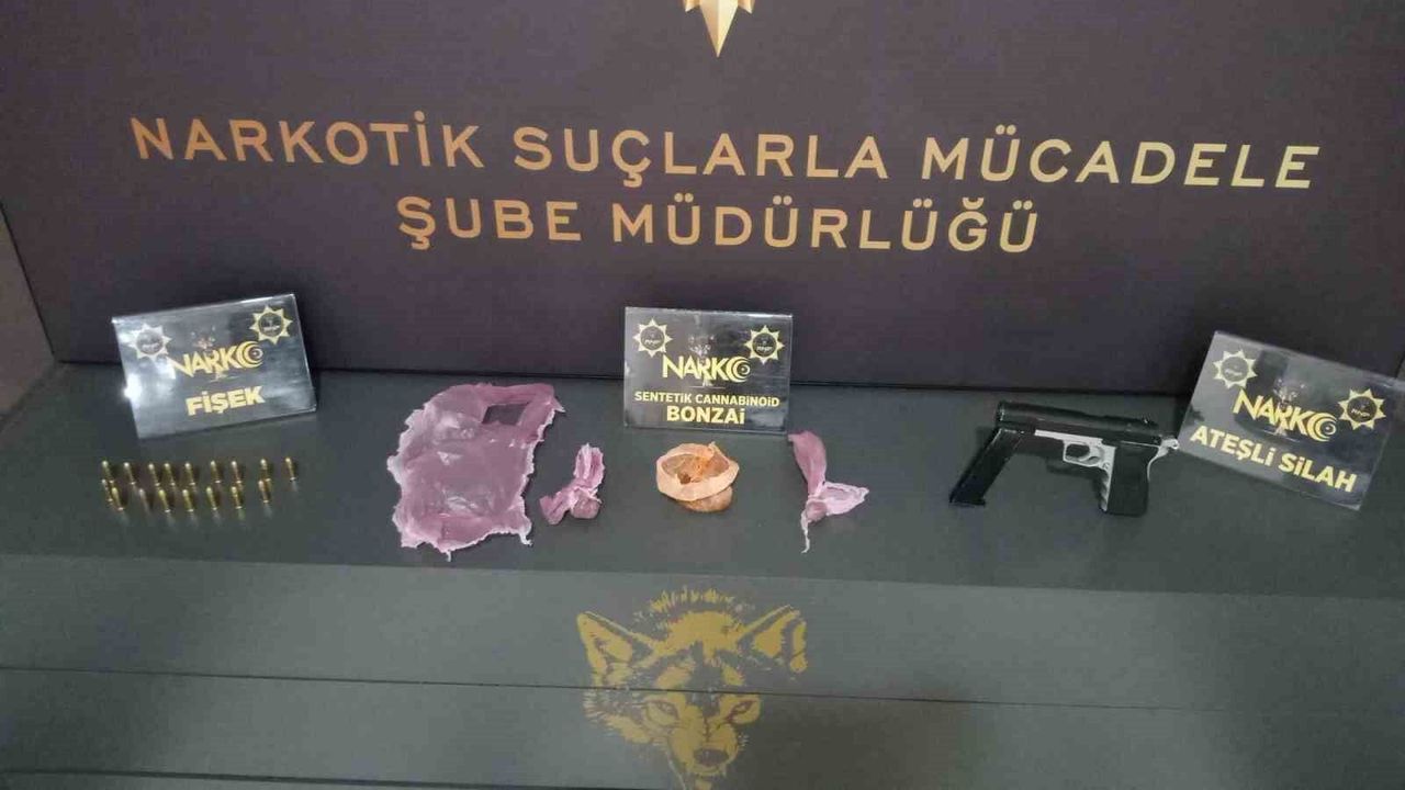 Alınan bilgiye göre, Rize İl Emniyet Müdürlüğü narkotik suçlarla mücadele şube müdürlüğü ekiplerince yapılan çalışmalarda tespit edilen 3 şahıs ve araçta arama gerçekleştirdi. Yapılan arama neticesinde, 34 gram sentetik bonzai maddesi, 1 adet ruhsatsız tabanca ve 17 adet fişek ele geçirildi. Konu ile ilgili 3 kişi gözaltına alındı.