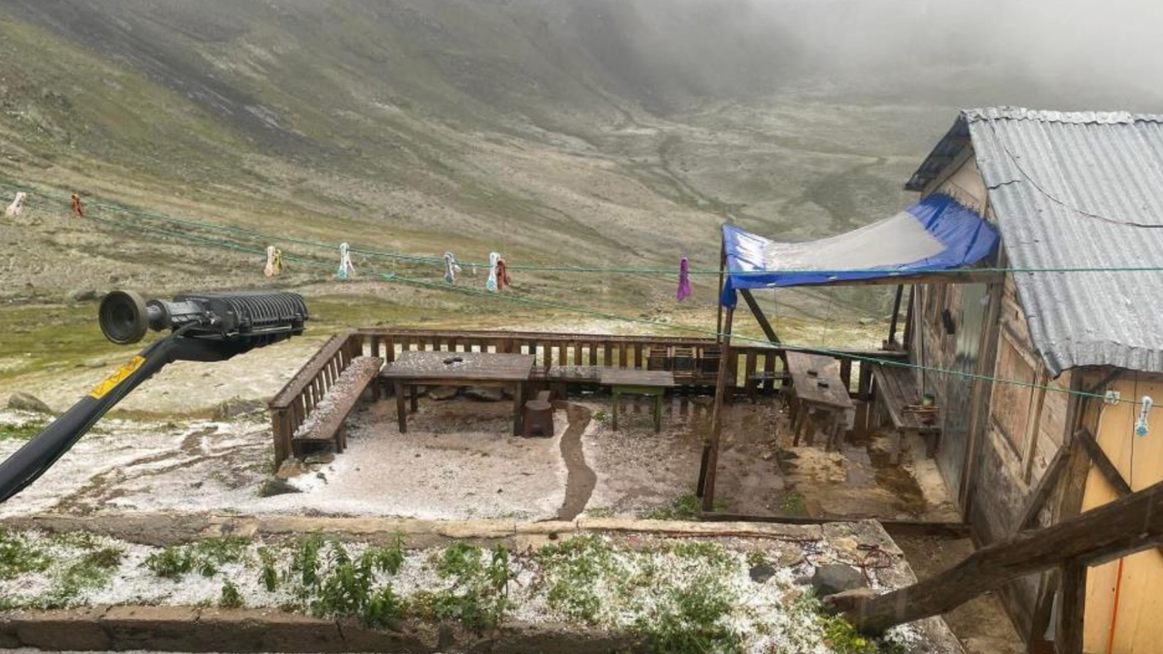 Doğu Karadeniz Yaylaları’nda artık yaz bitip sonbahar etkisini göstermeye başladı. Rize’nin Çamlıhemşin ilçesine bağlı 2040 rakımdaki Hazindak Yaylası’nda yaşayan yaylacılar sabaha dolu yağışı ile uyandı. Yaylalarının beyaza büründüğünü gören yaylacılar dolu yağışından olumsuz etkilenmemek için bir süre evlerinden çıkamadı. O anlar ise bir yaylacının cep telefonu kamerasına yansıdı.