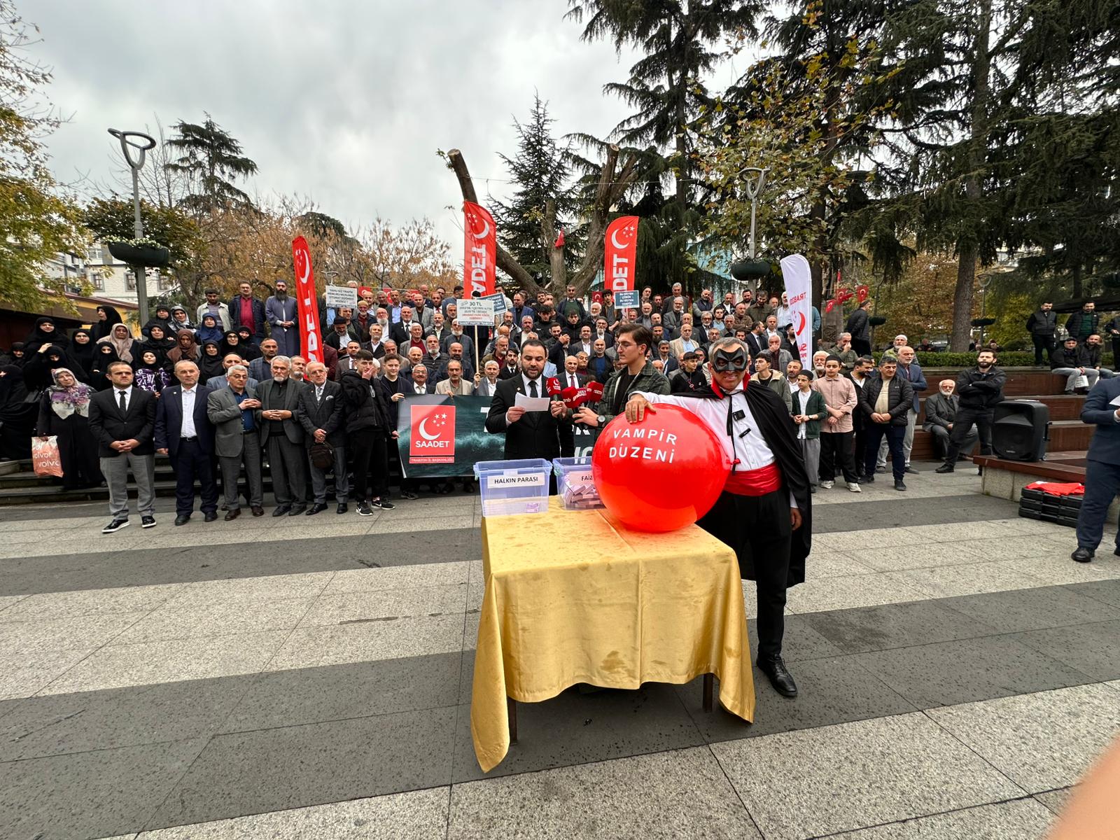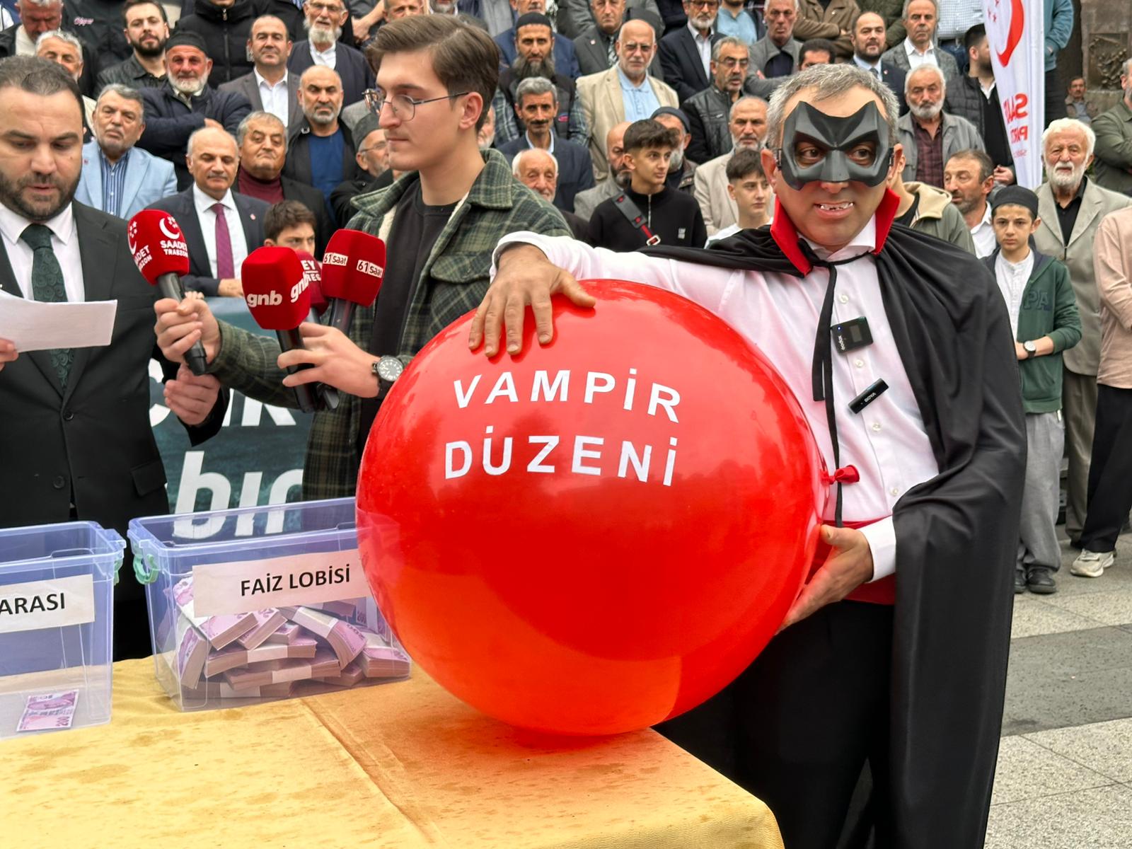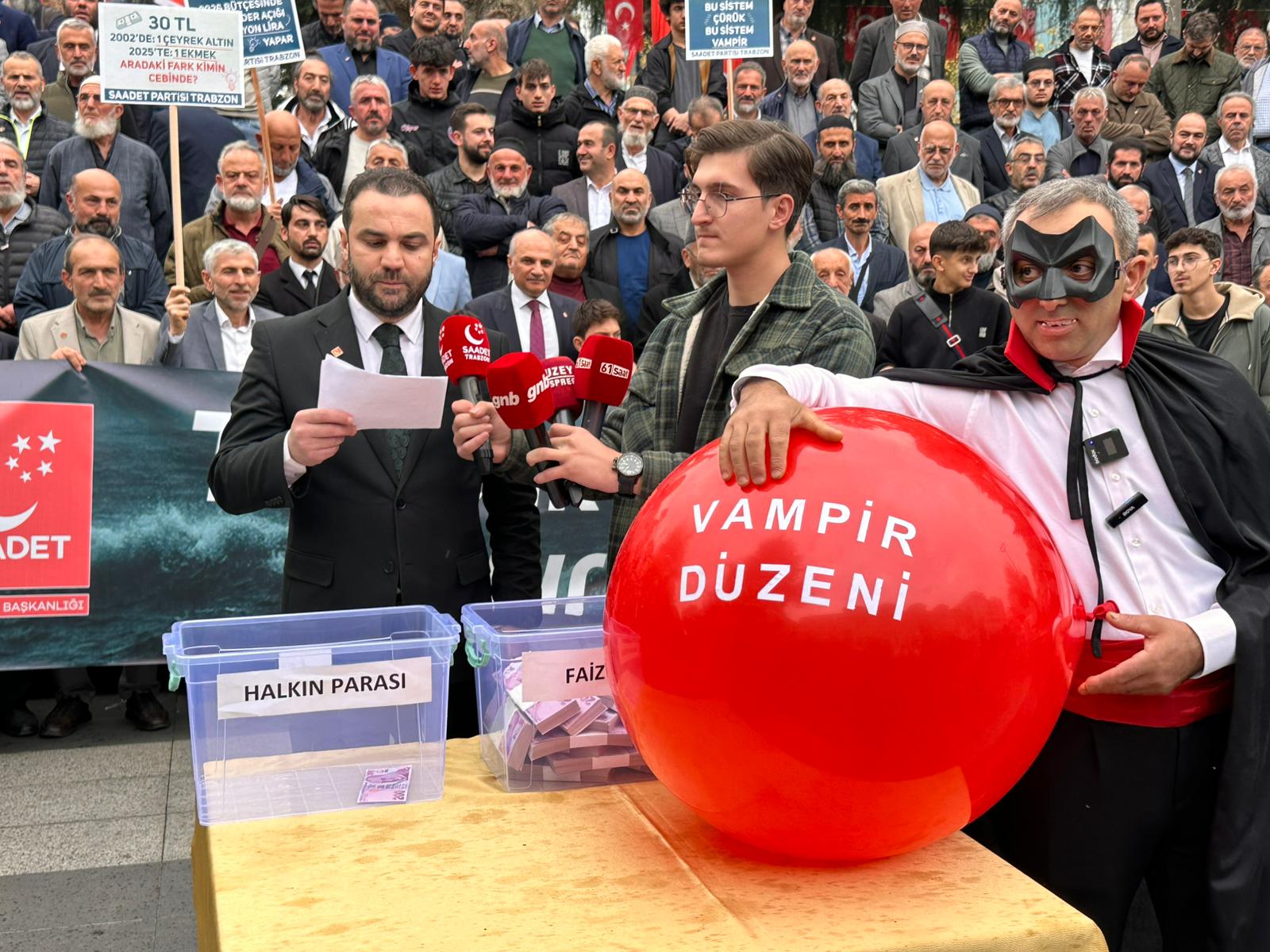 Vampirin ardından kürsüye çıkan Saadet Partisi Trabzon İl Başkanı Ahmet Muratoğlu, vampirin “halkın kanını emen düzeni” temsil ettiğini söyleyerek iktidarın ekonomi yönetimini sert sözlerle eleştirdi. Sembolik temsilde, vampirin topladığı paralar Muratoğlu tarafından geri alınarak temsili olarak halka dağıtıldı.