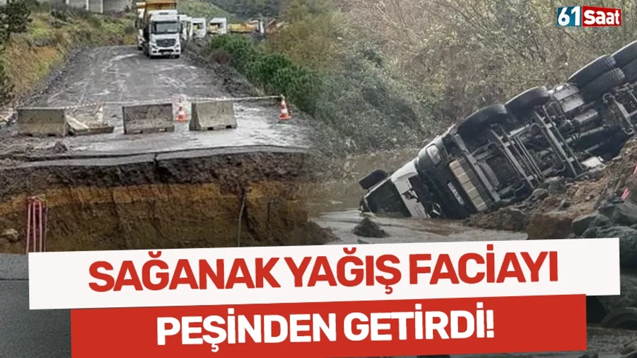 Yine Sarıyer'de kuvvetli yağış nedeniyle yolun çökmesi sonucu pikap ile kamyonet dereye düştü.