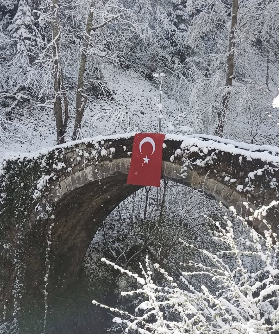Trabzon'un Şalpazarı ilçesine bağlı Geyikli Mahallesi'nde yer alan tarihi taş kemer köprü, zamanın izlerini taşıyan yapısıyla dikkat çekiyor.