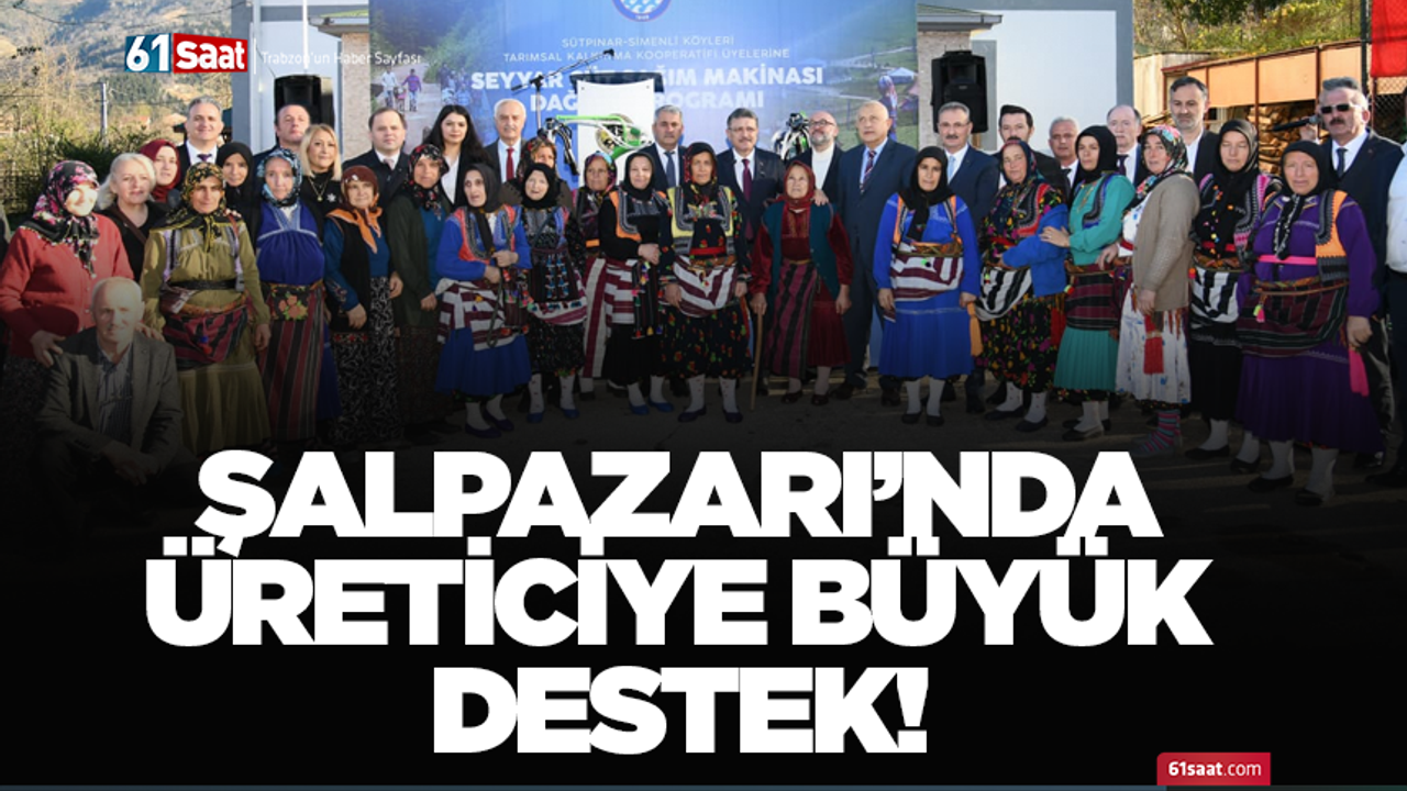 Trabzon Büyükşehir Belediyesi Tarımsal Hizmetler Dairesi Başkanlığı tarafından Şalpazarı ilçesinde süt sığırcılığı yapan 40 çiftçiye, seyyar süt sağım makinesi hibe edildi. Dağıtım törenine Büyükşehir Belediye Başkanı Ahmet Metin Genç'in yanı sıra Şalpazarı Kaymakamı Kezban Yerlikaya Akpınar, Şalpazarı Belediye Başkanı Refik Kurukız, Büyük Birlik Partisi (BBP) Trabzon İl Başkanı Adem Aydın, AK Parti Şalpazarı İlçe Başkanı Zeki Çabuk ve üreticiler katıldı.