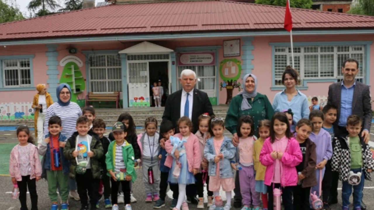 İlçe Milli Eğitim Müdürü İdris Kabahasanoğlu ve Şube Müdürü Hasan Tekke, anaokulunu ziyaret ederek eğitimine katılan öğrencilerle sohbet etti.