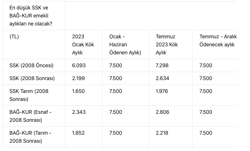 7500, 7750, 8000, 8250, 8500 TL EMEKLİ MAAŞI ALANLAR NE KADAR MAAŞ ALACAK?- Kök maaşı 6 bin lira olan emeklilier yüzde 25 artışla 7.500 TL olacak. Yüzde 4 ek ödemeyle 7.800 liraya yükselecek.