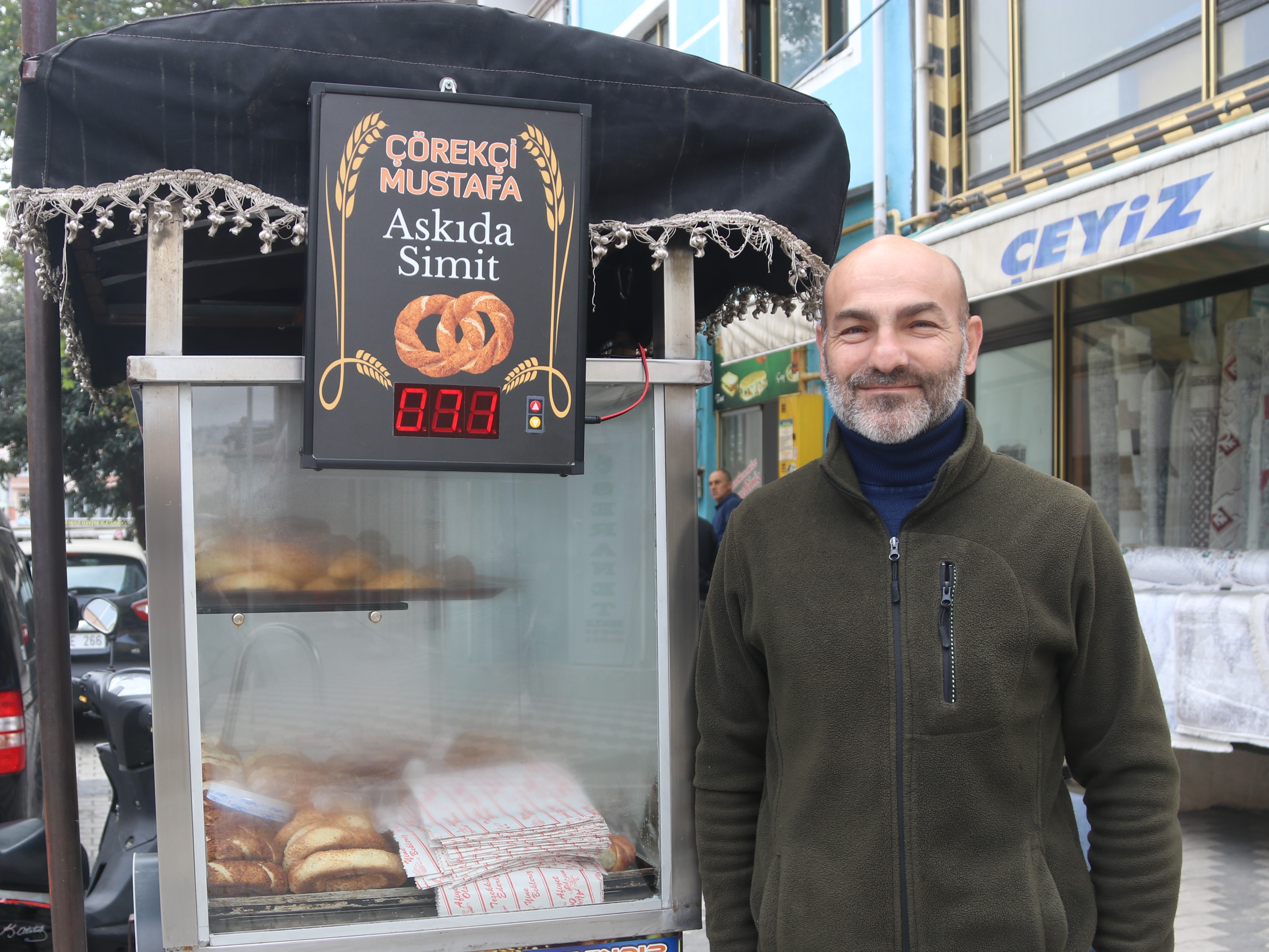 İlçede simitçilik yapan Mustafa Ergül, "askıda simit" uygulamasıyla ihtiyaç sahibi insanların ücretsiz simit alabilmelerine imkan sağladıklarını söyledi.