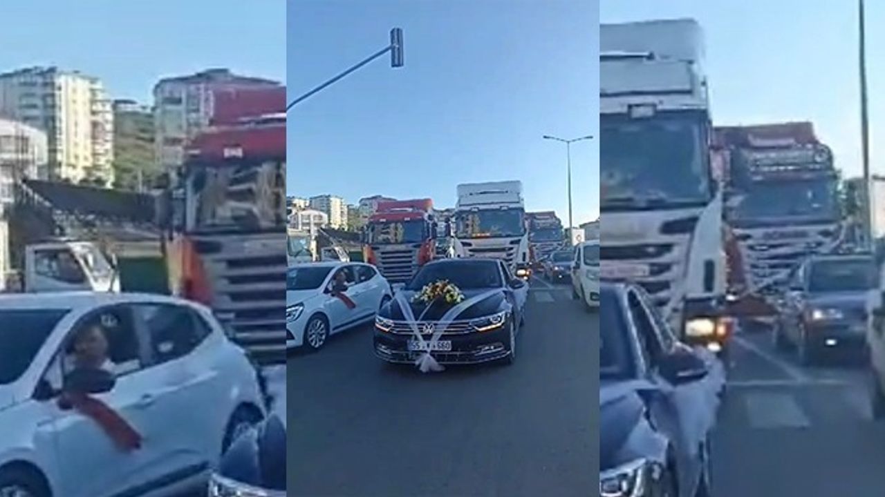 İlkadım ilçesinde, 30 Temmuz'da düğünleri yapılan İpek Nur-Rahmi Arslan çiftinin konvoyuna, TIR şoförü olan damadın arkadaşları 10 TIR ile katıldı. Rahmi Arslan, mahalleliden özür dileyerek, "Öncelikle verdiğimiz rahatsızlıktan dolayı özür dileriz. Çok beklenmedik bir konvoy oldu. 10 tane TIR vardı. Kornalarımız biraz rahatsızlık vermiş olabilir ama hayatımızda bir kez yaşıyoruz bunu. İnsanların bizi anlayışla karşıladıklarını düşünüyorum. Ben de ana yolda oturuyorum, bazen 3-4 konvoy geçiyor bir günde. Ben gördükçe mutlu oluyorum. Arkadaşlarımız da bize böyle bir sürpriz yapmış, kırmak olmazdı. Düğünümüz de harika oldu, herkese çok teşekkürler" diye konuştu.