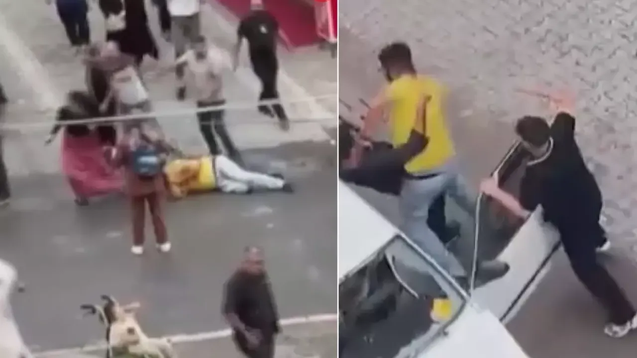 Taraflar birbirilerine sopa, taş ve yumruklarla saldırırken, ortalık savaş alanına döndü. Bir şahıs ise kavga ettiği adamların üzerine aracını sürerken, ön camının atılan bir taş üzerine kırılması sonucunda park halindeki arabaya çarptı. Yaşanan o anlar ise anbean kameraya yansıdı.