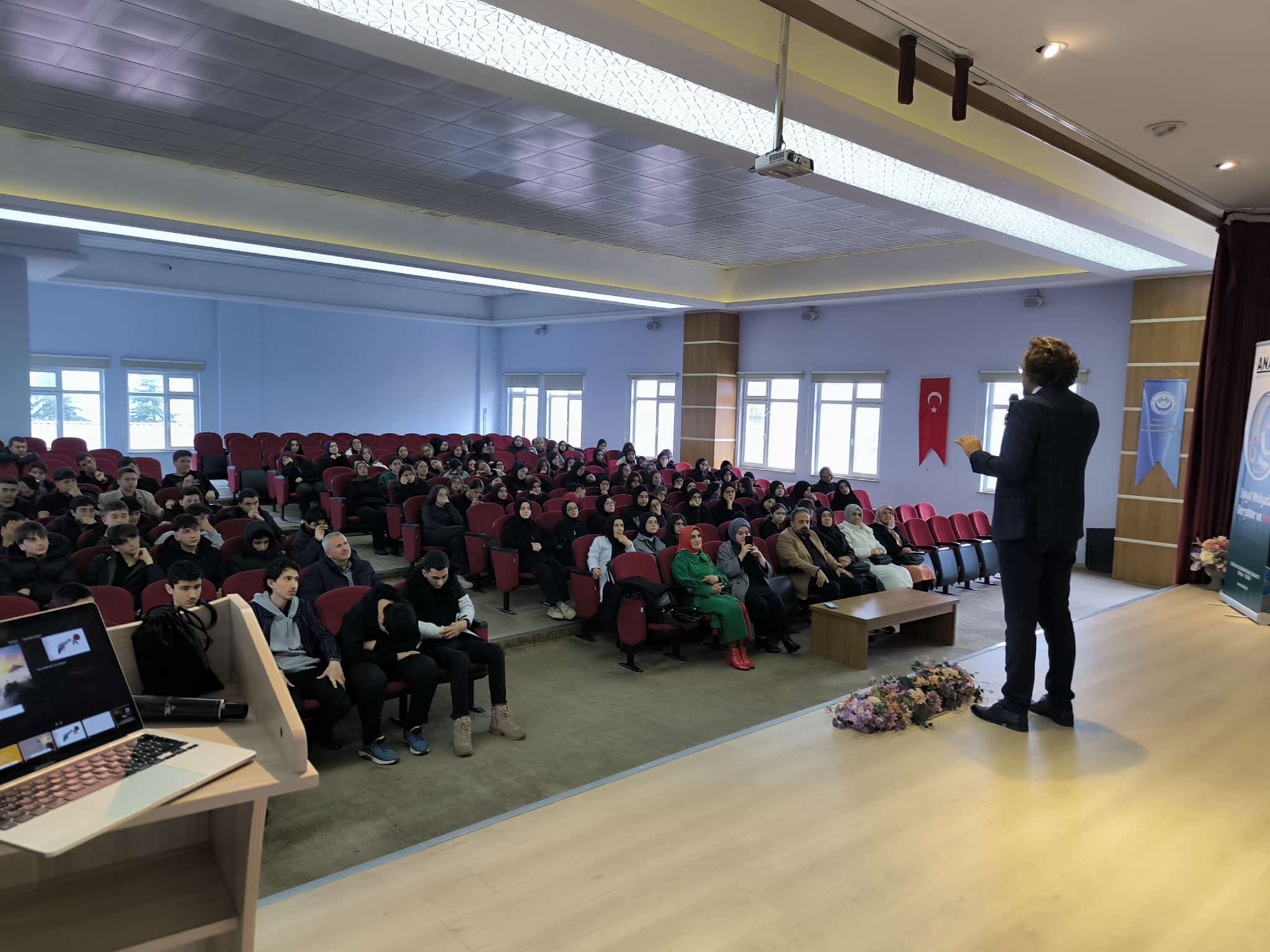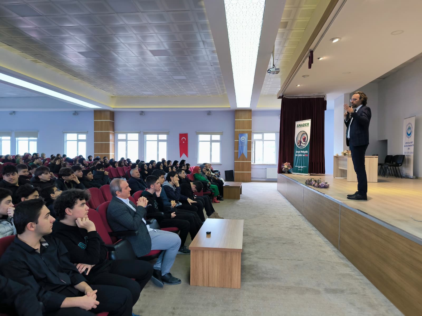 Anader Kadın Kolları Başkanı Havva Yetimoğlu Demir koordinatörlüğünde yürütülen proje kapsamında, konferanslar serisinin 9.’cusu bugün Dursun Ali Kurt AİHL Fen ve Sosyal Bilimler Proje Okulu’nda gerçekleştirildi. Trabzon Üniversitesi İletişim Fakültesi Öğretim Üyesi Prof. Dr. Emre Şaban Aslan tarafından verilen konferans öğrenciler tarafından dikkatlice dinlendi.