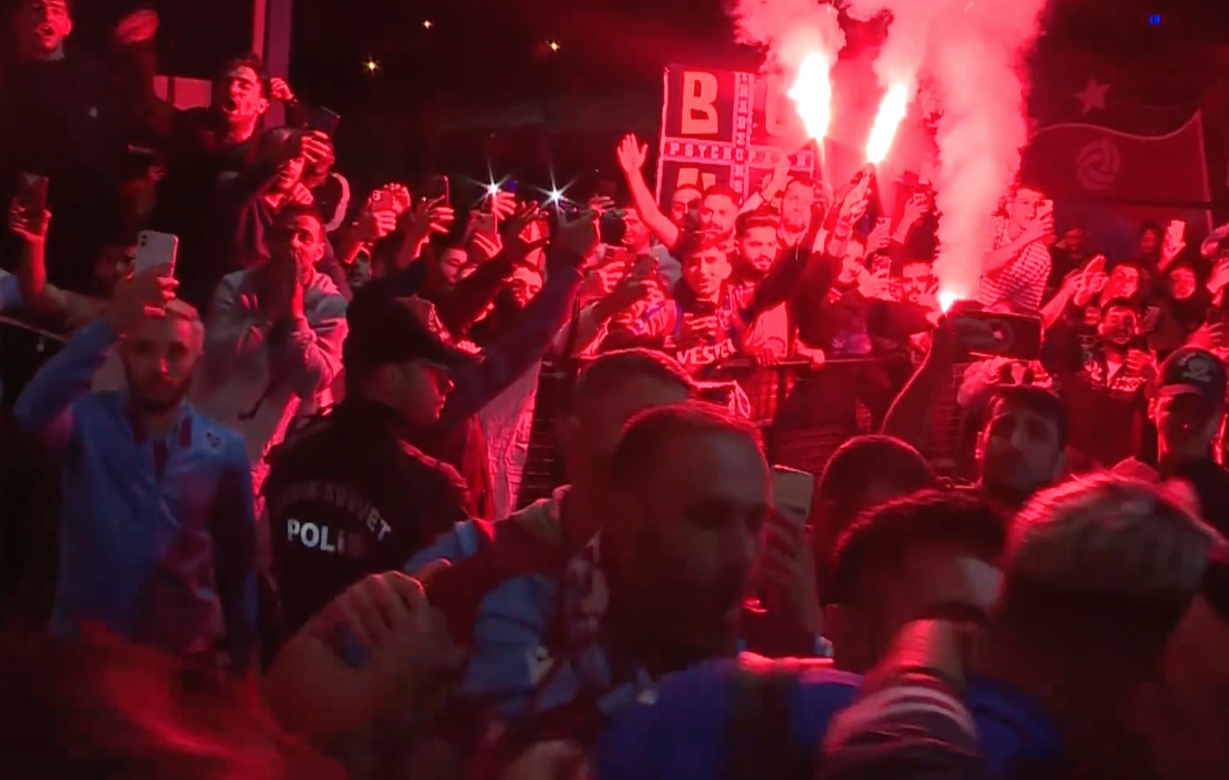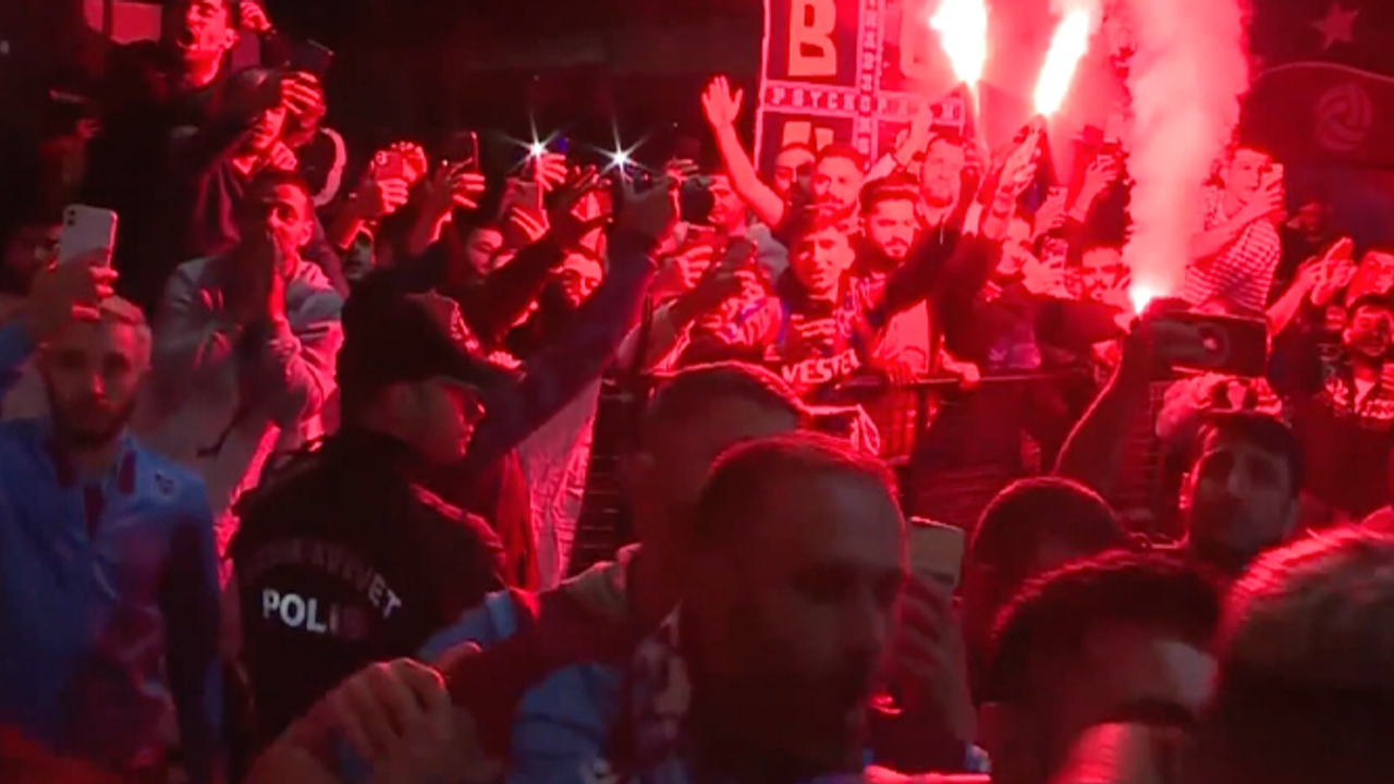 Karşılaşmanın ardından kente gelen bordo-mavili kafileyi, Trabzon Havalimanı'nda çok sayıda taraftar, meşale ve marşlar eşliğinde karşıladı.