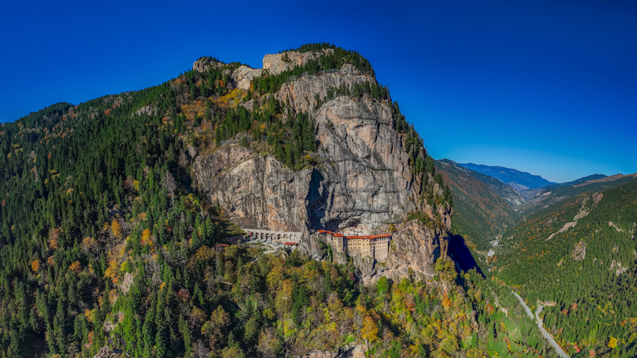 Altındere Vadisi'nde dağın yamacında yer alan Sümela Manastırı ile ilçenin bir diğer tarihi yapısı Vazelon Manastırı, çevrelerini saran renk cümbüşüyle dikkati çekiyor.