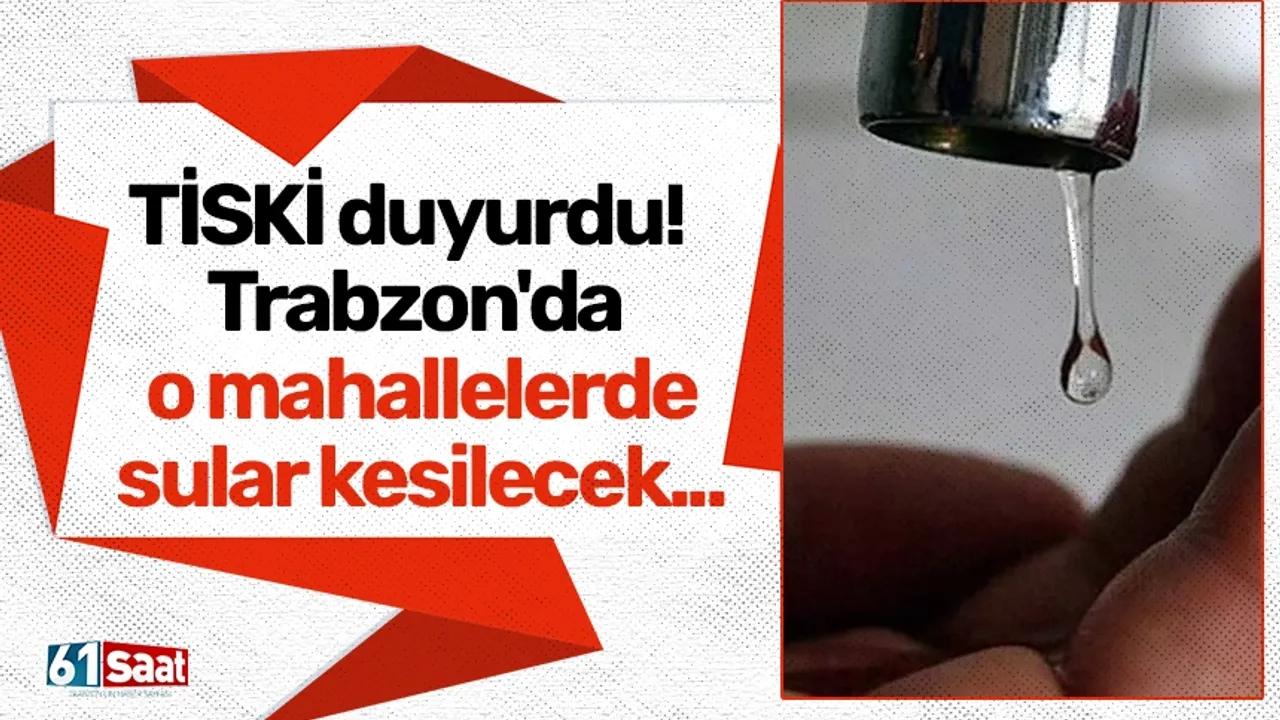 Trabzon Büyükşehir Belediyesi İçme Suyu ve Kanalizasyon İdaresi (TİSKİ), Ortahisar ilçesinde içme suyu altyapısında yapılacak zorunlu bir çalışma nedeniyle bazı mahallelerde planlı su kesintisi uygulanacağını açıkladı. Yenicuma Mahallesi Hastane yanı mevkisinde bulunan 1000 metreküplük içme suyu deposuna bağlı şebeke hattında, bölgede devam eden karayolu çalışmaları sebebiyle deplase işleminin bağlantı çalışması yapılacak.