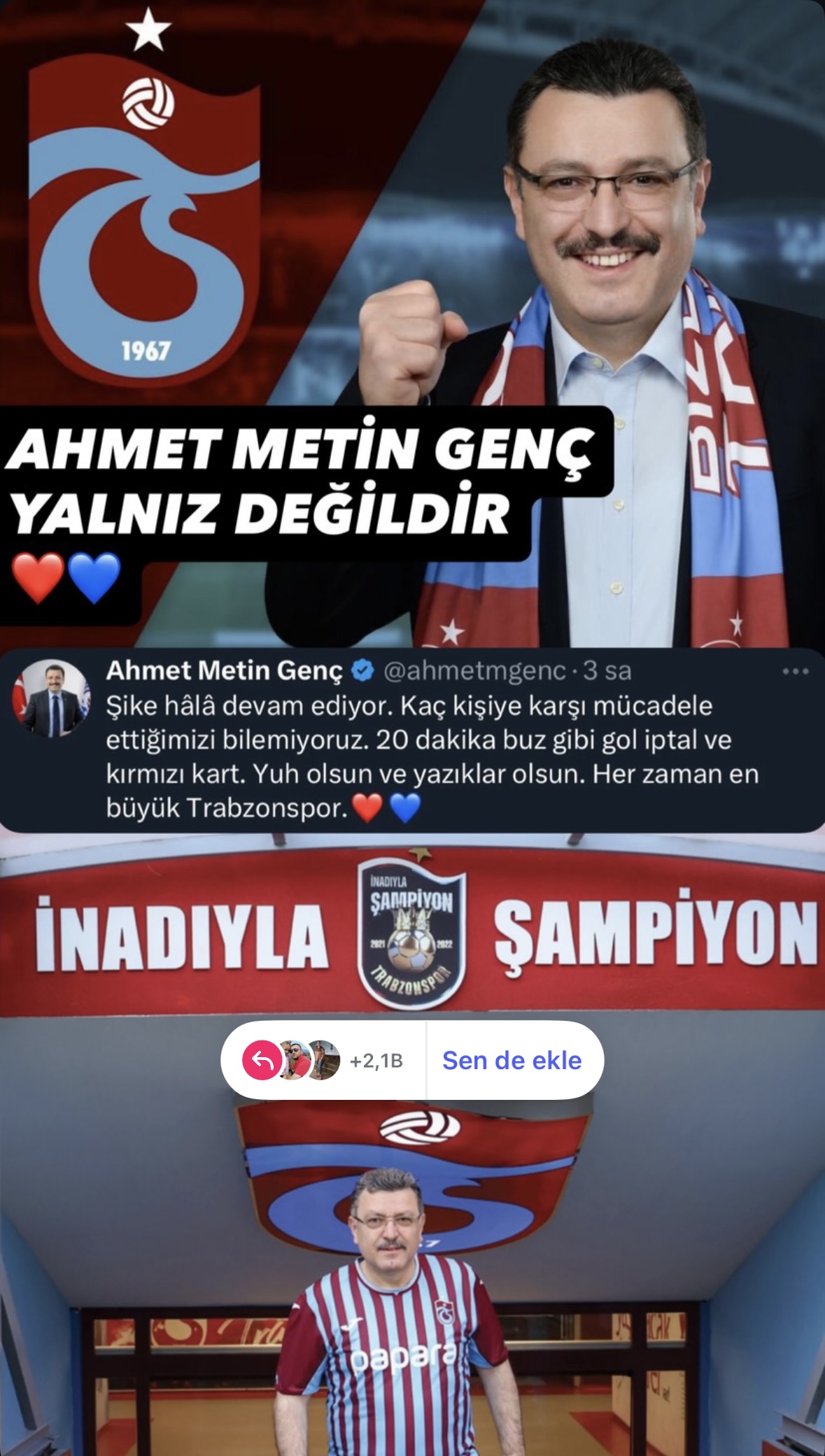 Evet Genç’in sözlerinin ardından çok fazla destek veren isim oldu ancak ne Trabzon ne de Trabzonspor 2bin kişiyle sınırlı değil.