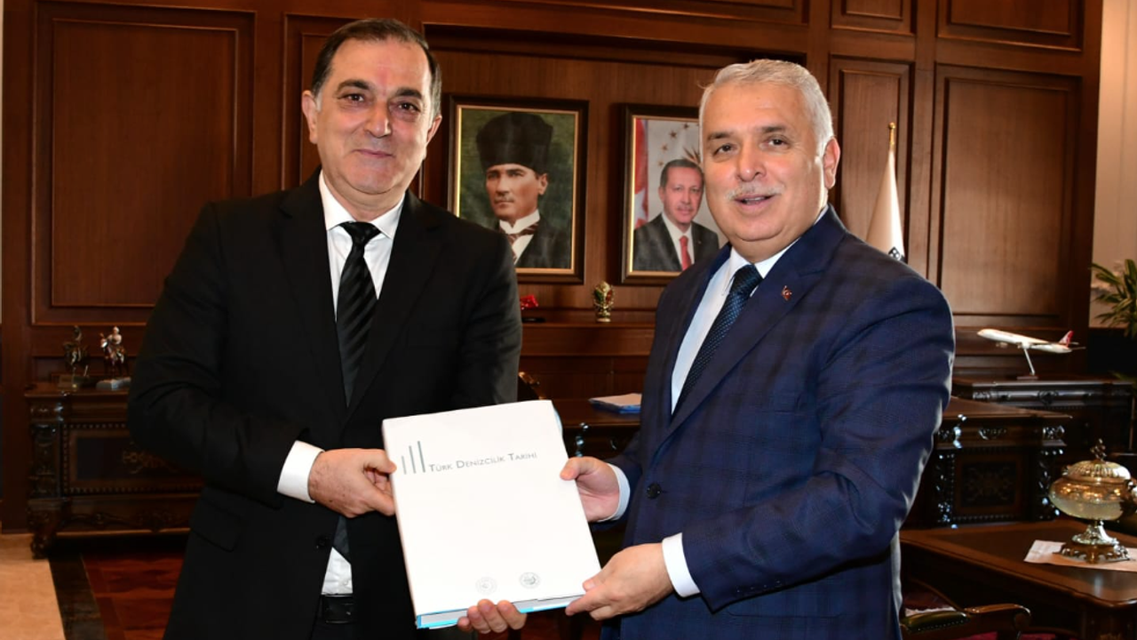 ‘Bakanlık Olur’u ile Trabzon Bölge Liman Başkan Vekili olan Okur, Trabzon Valisi Yıldırım’a Türk Denizcilik Tarihi isimli kitabı hediye etti.